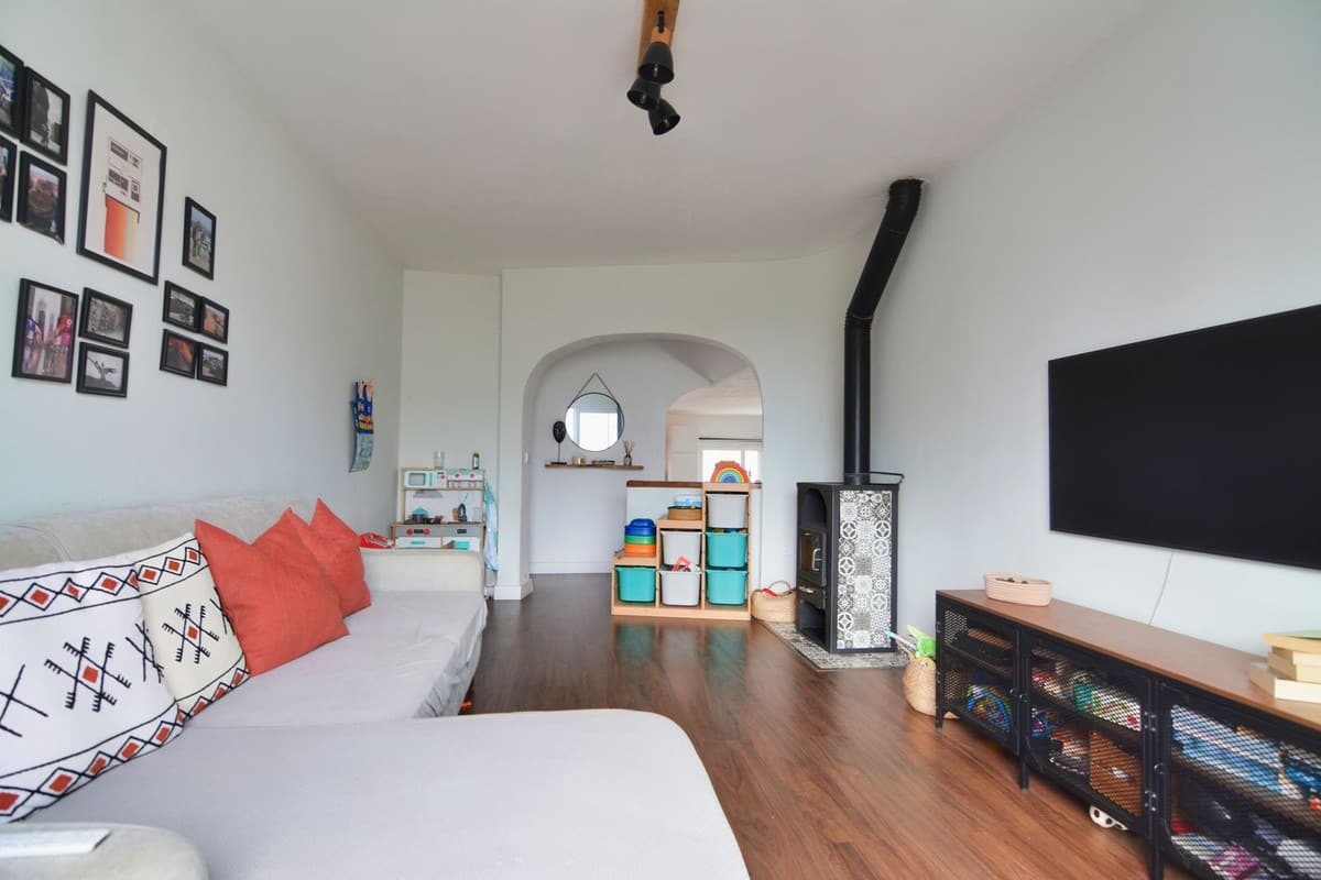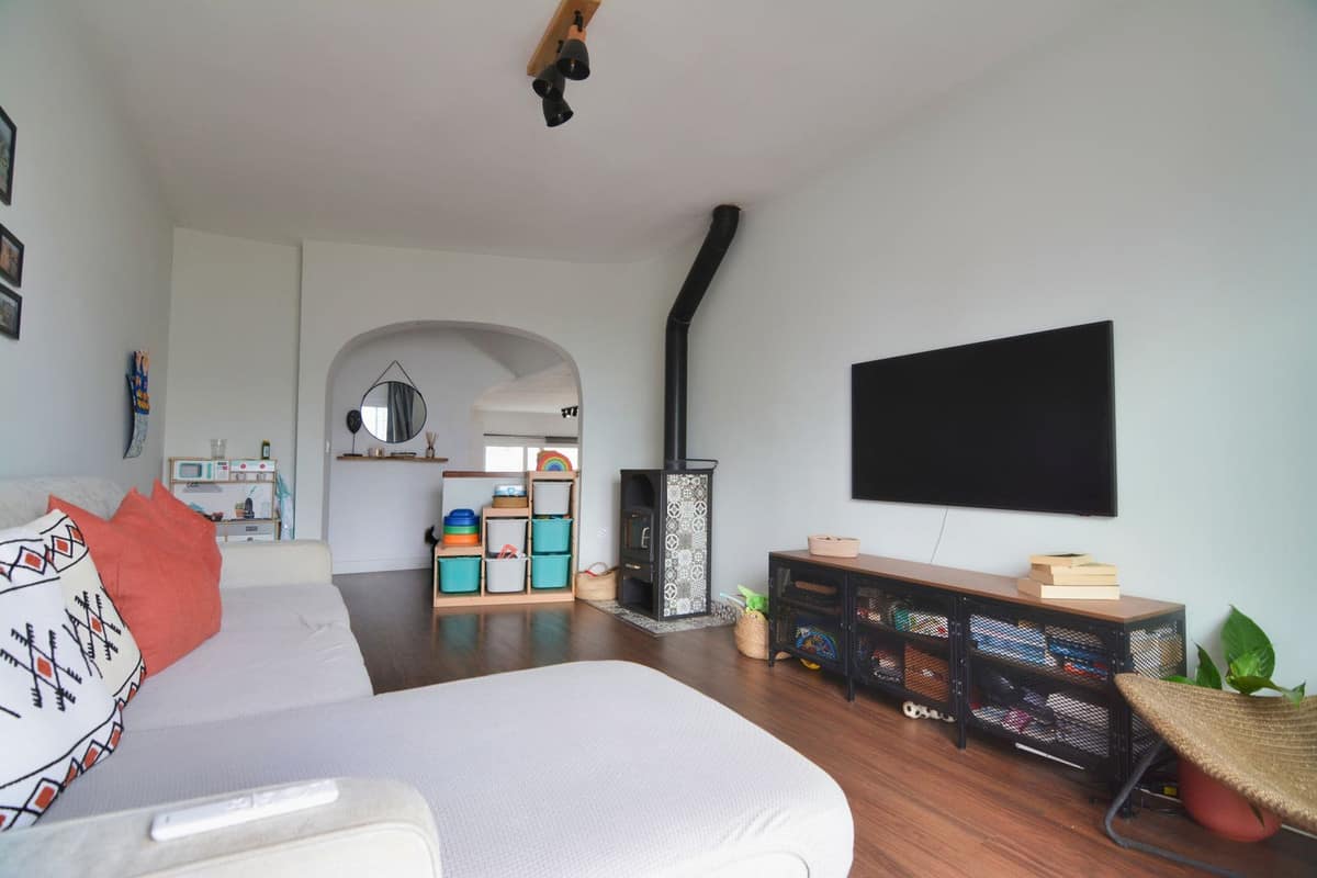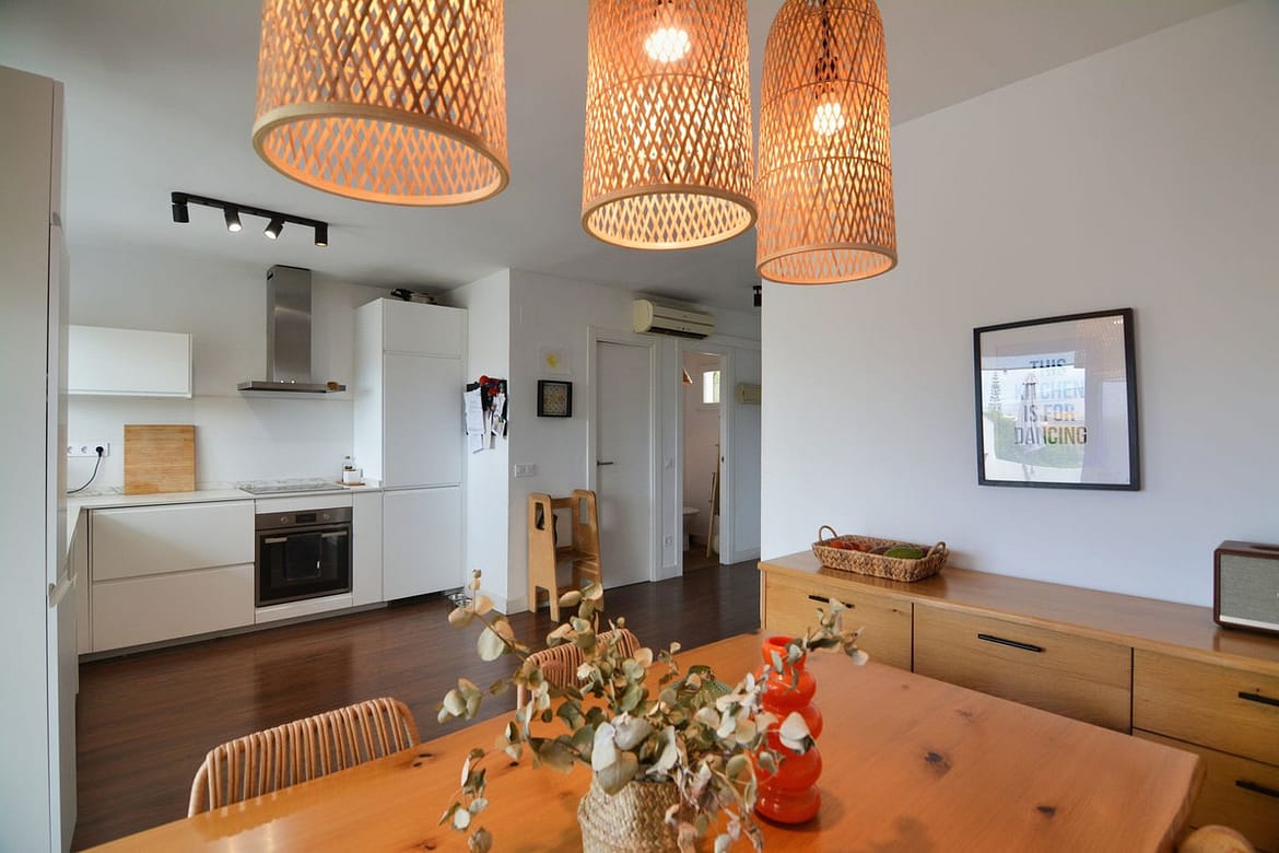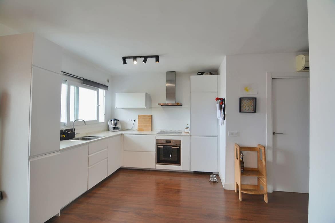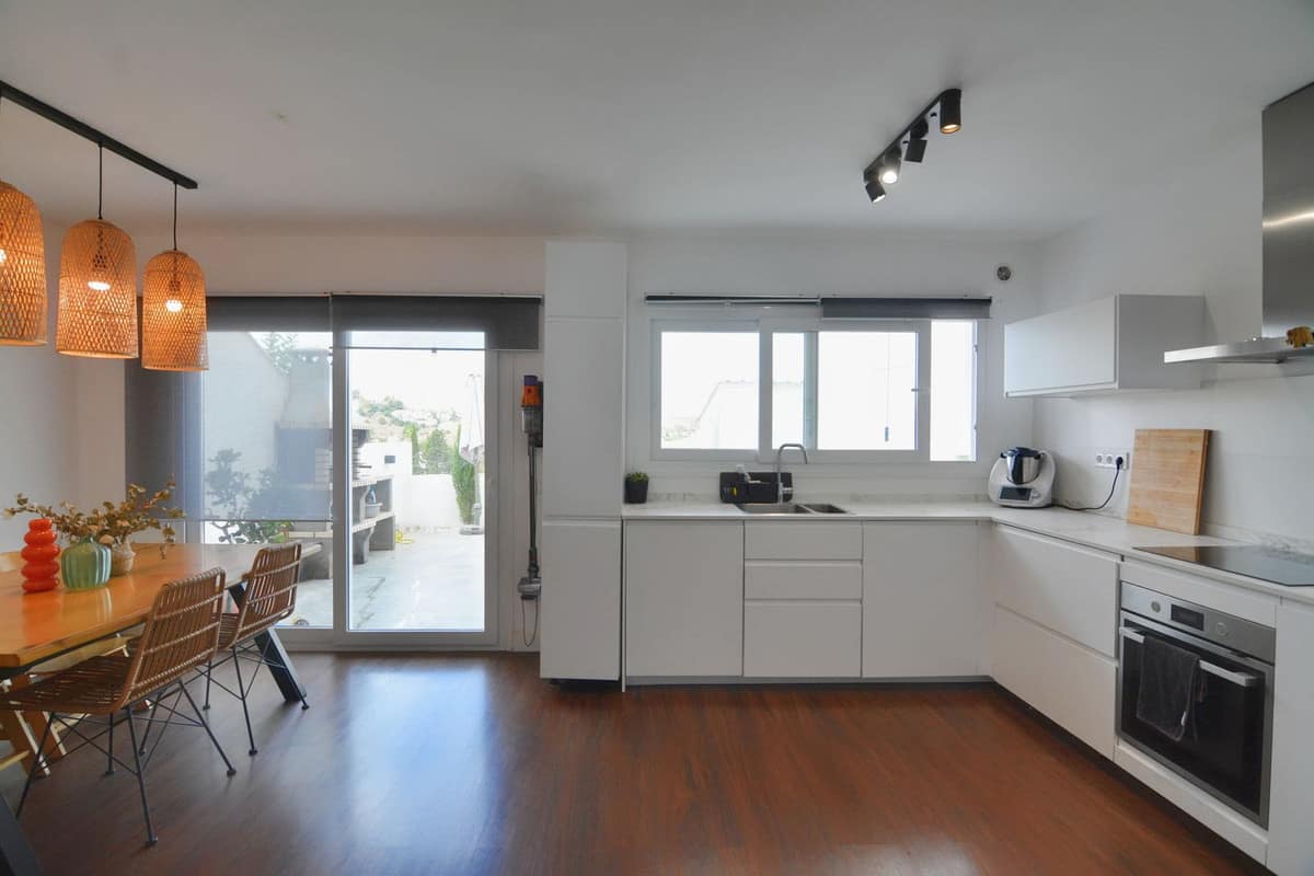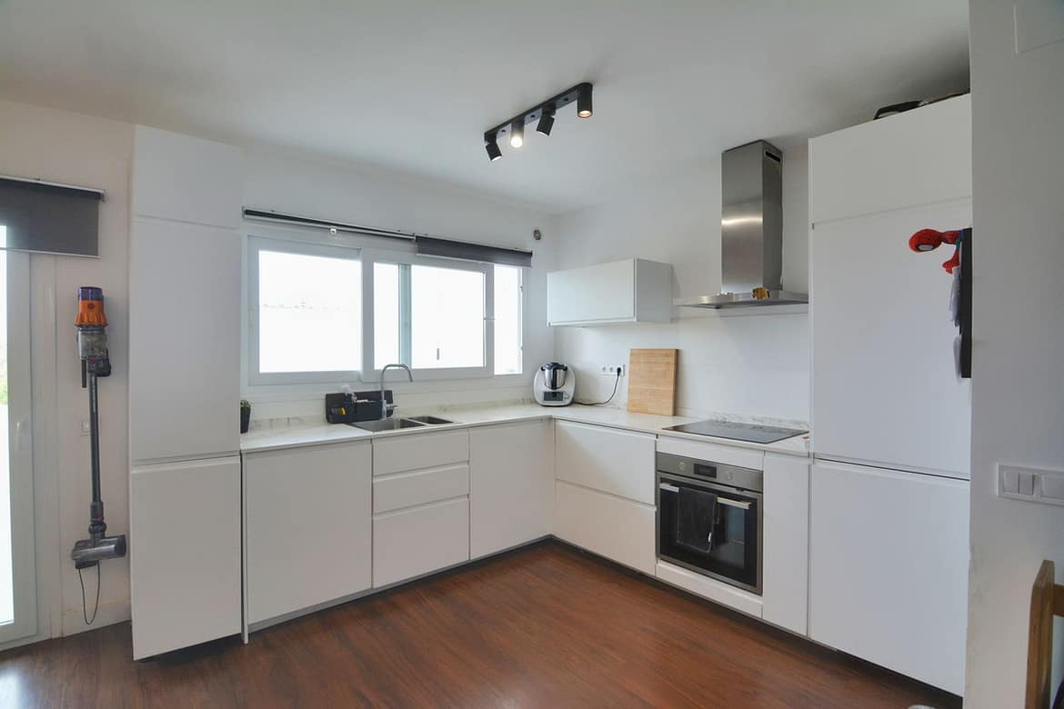 On the ground floor, you will find a bright and spacious living room, a modern fully equipped kitchen, and a practical guest bathroom, ideal for everyday use and convenience.