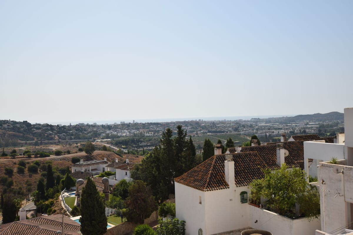 This is a beautiful 3 bedroom townhouse located in the upper part of the Mijas Golf estate and therefore offering amazing panoramic sea views all the way to Fuengirola and mountain views across the Mijas mountain range behind the whitewashed village of Mijas pueblo.