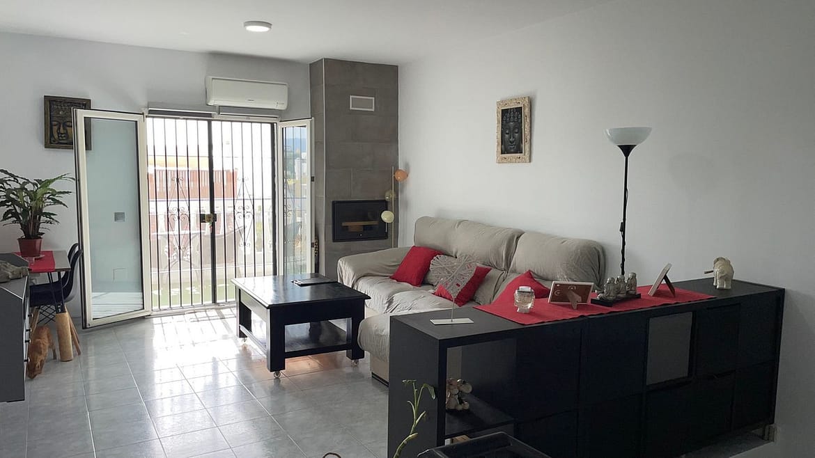 Immaculate townhouse in Punta Lara (Nerja) on 3 floors. The main house is on 2 levels and has 2 large bedrooms, 1 bathroom, spacious lounge with balcony and fully fitted kitchen. There's a large south facing roof terrace with panoramic sea and mountain views, with pergola, dining area, water and electrical connection, barbecue and multiple storage. The under built of the house has been converted in a self contained studio with fitted kitchen and bathroom and separate entrance.