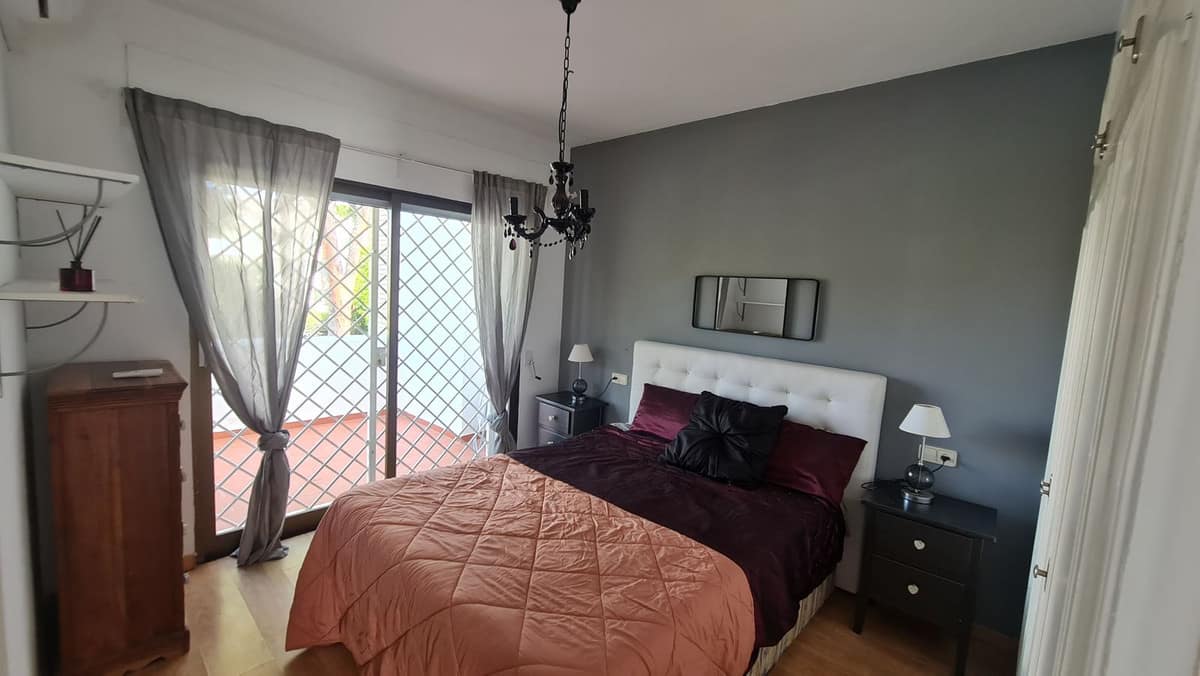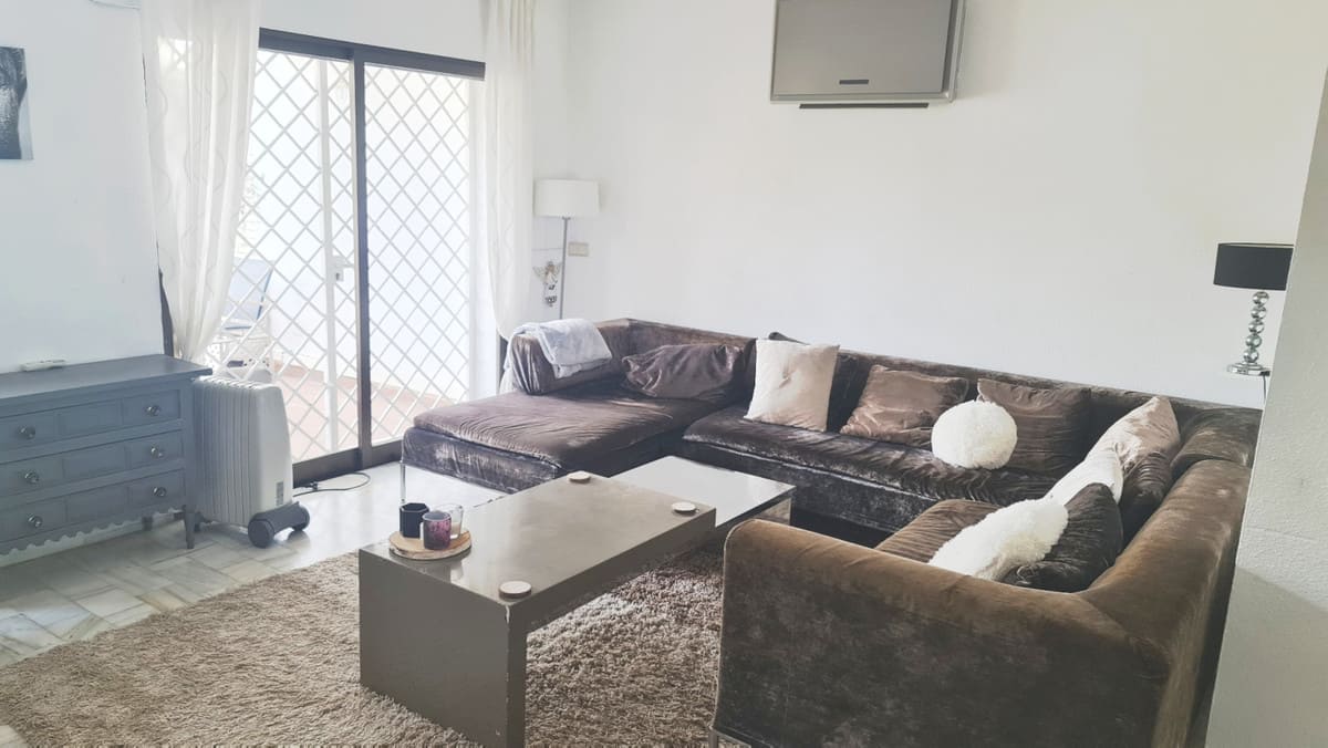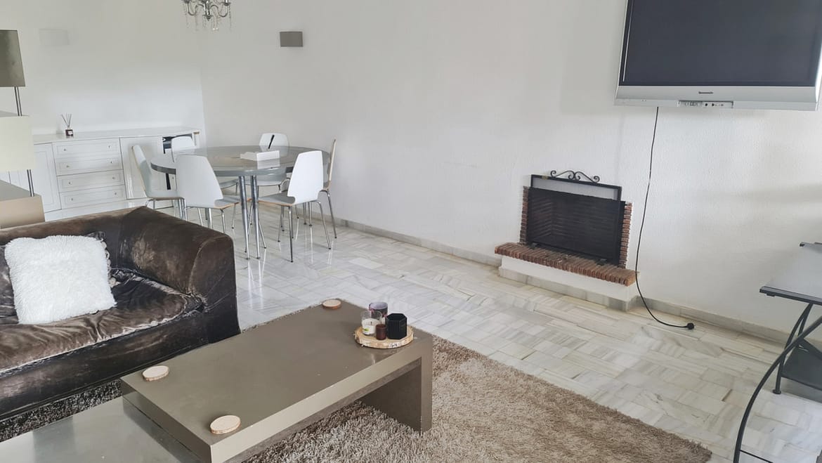 Surrounded by 12.000 m2 of gardens for only 12 properties and in front of las Brisas Golf. This lovely , 3 bedrooms duplex with 2 bahrooms and guess toilet .Offers you communal pool and gardens, to enjoy "the golf-valley way of life". Air cond all the rooms South and west orientated.Electric Windows Fireplace . .Parking inside of the gated complex. Cousy place to live very ,quiet and walking distance to las Brisas golf corse and los Naranjos Golf corse, close to Puerto Banus.