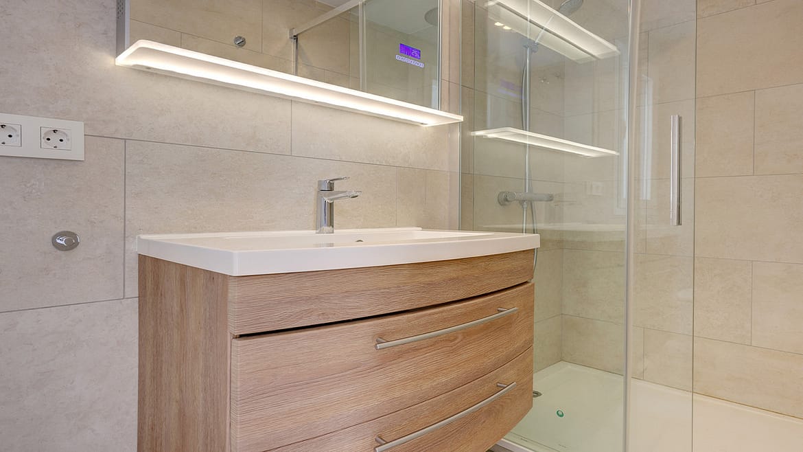 The bright and airy living area opens onto an extended conservatory-style terrace that captures sunlight from sunrise to sunset. It’s the perfect space to relax, dine al fresco, or entertain year-round while enjoying the views and natural light.