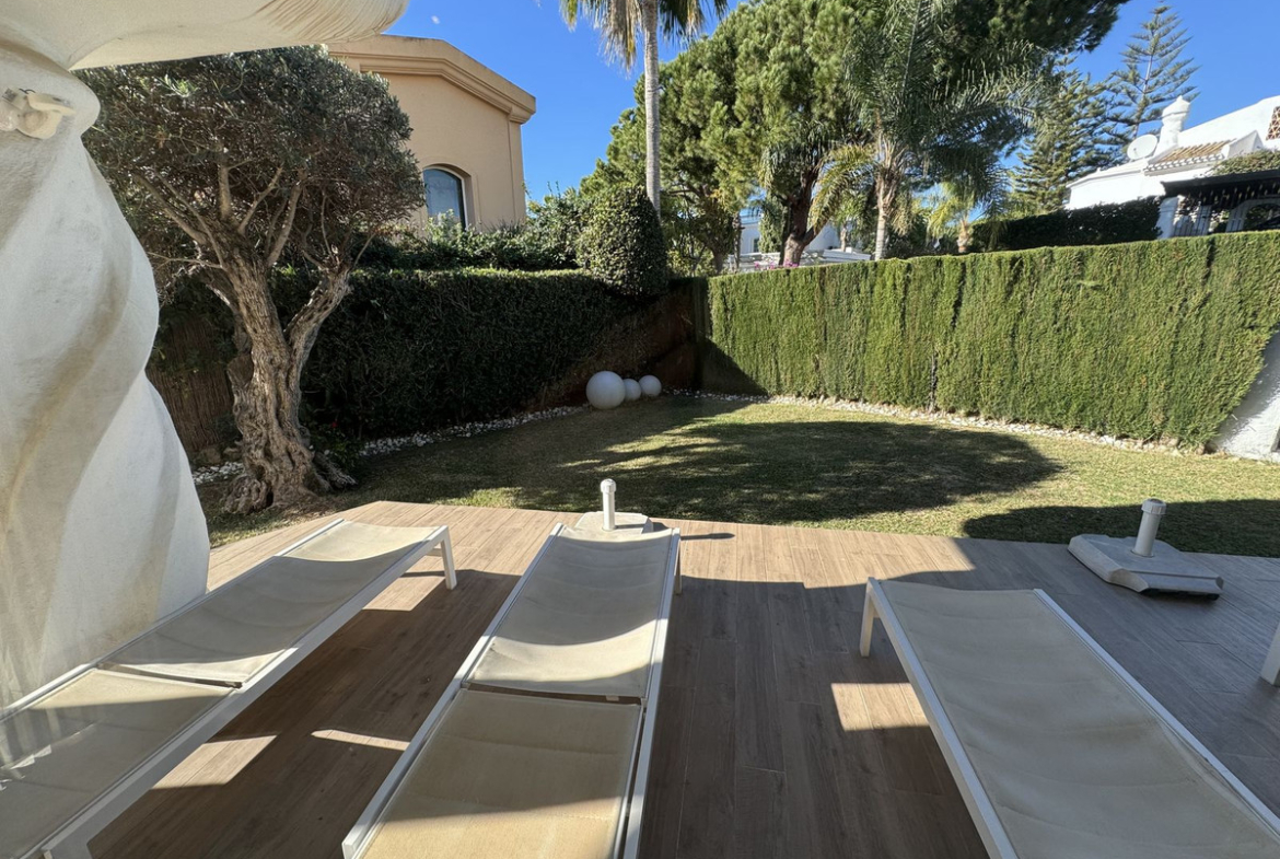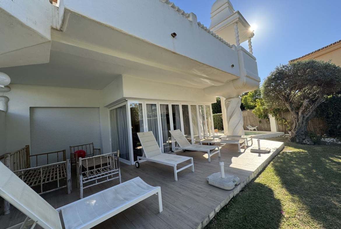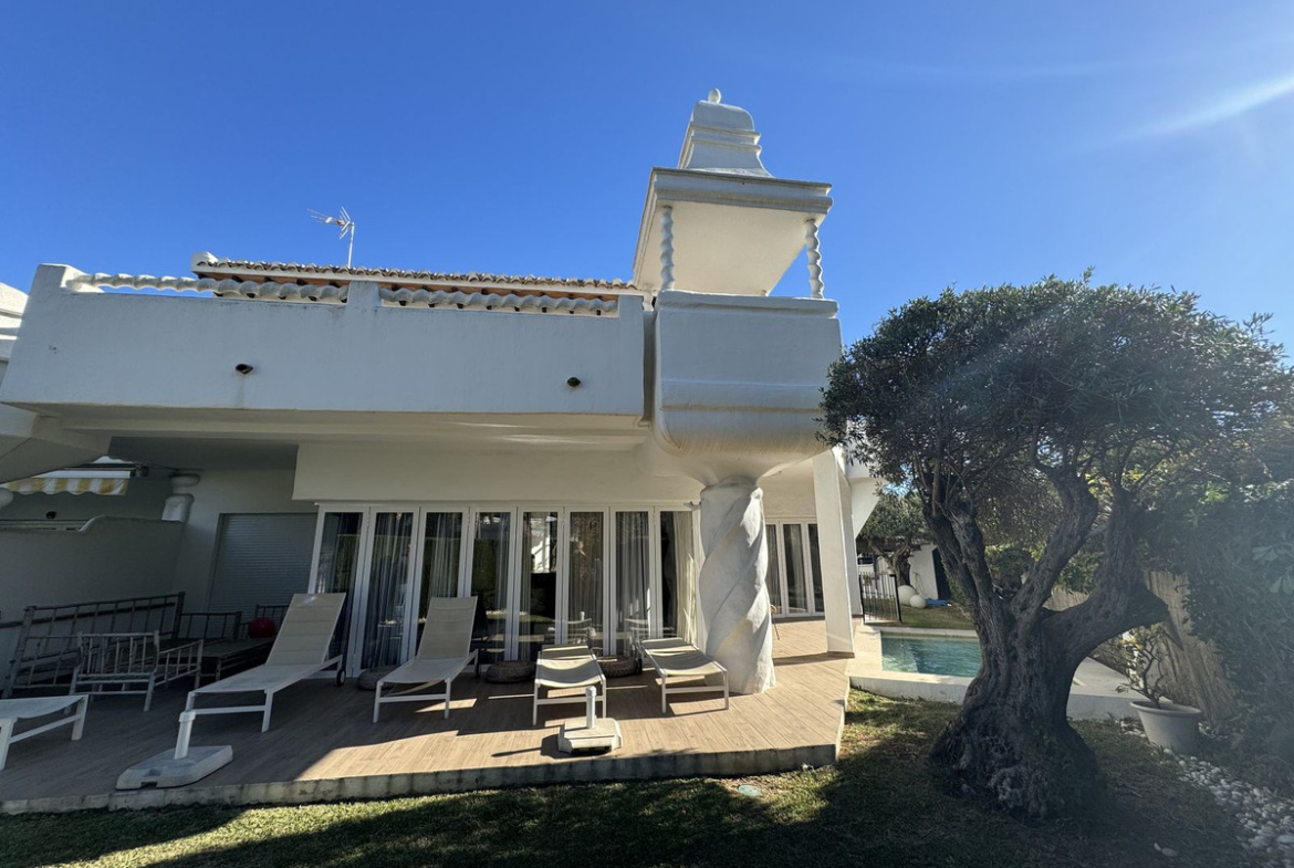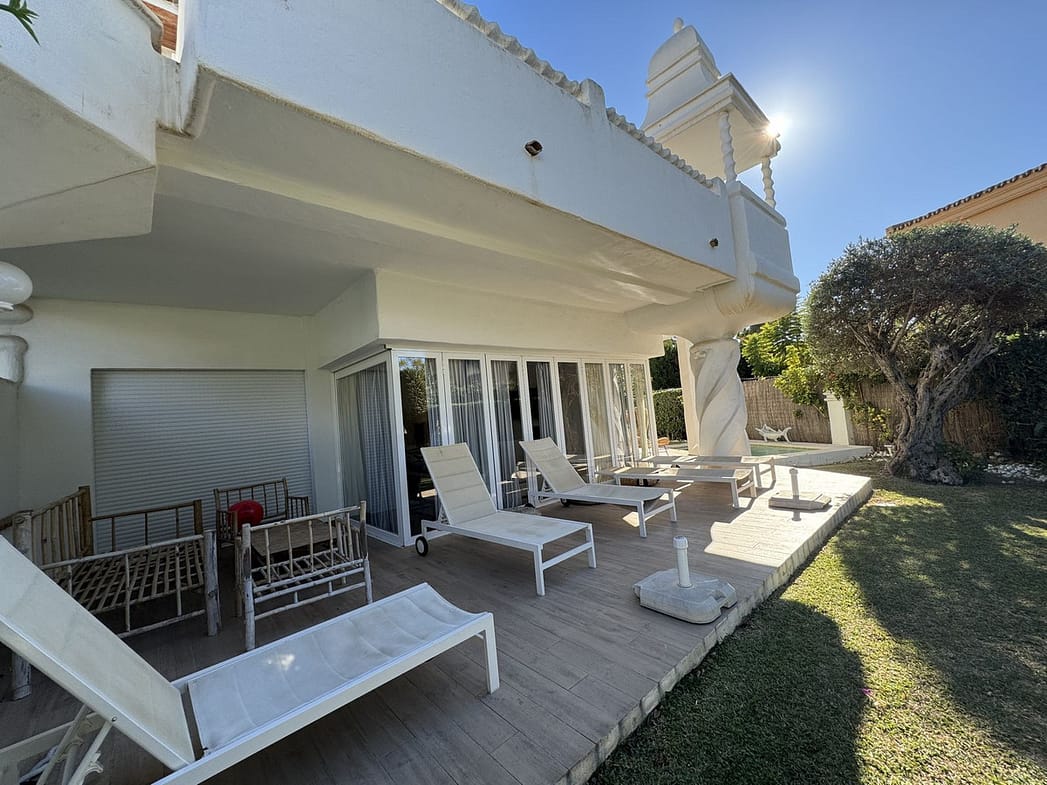 Spectacular 4 bedroom villa next to the beach in a urbanisation at Bahia de Marbella. Recently renovated with stunning sea views, it is located within the exclusive double security complex Las Dunas de Bahía de Marbella.