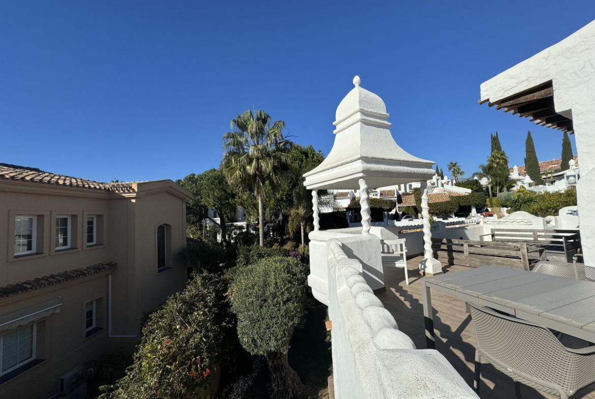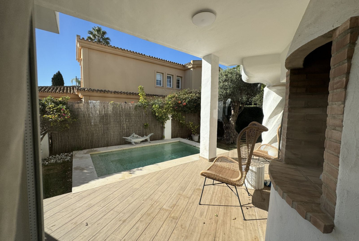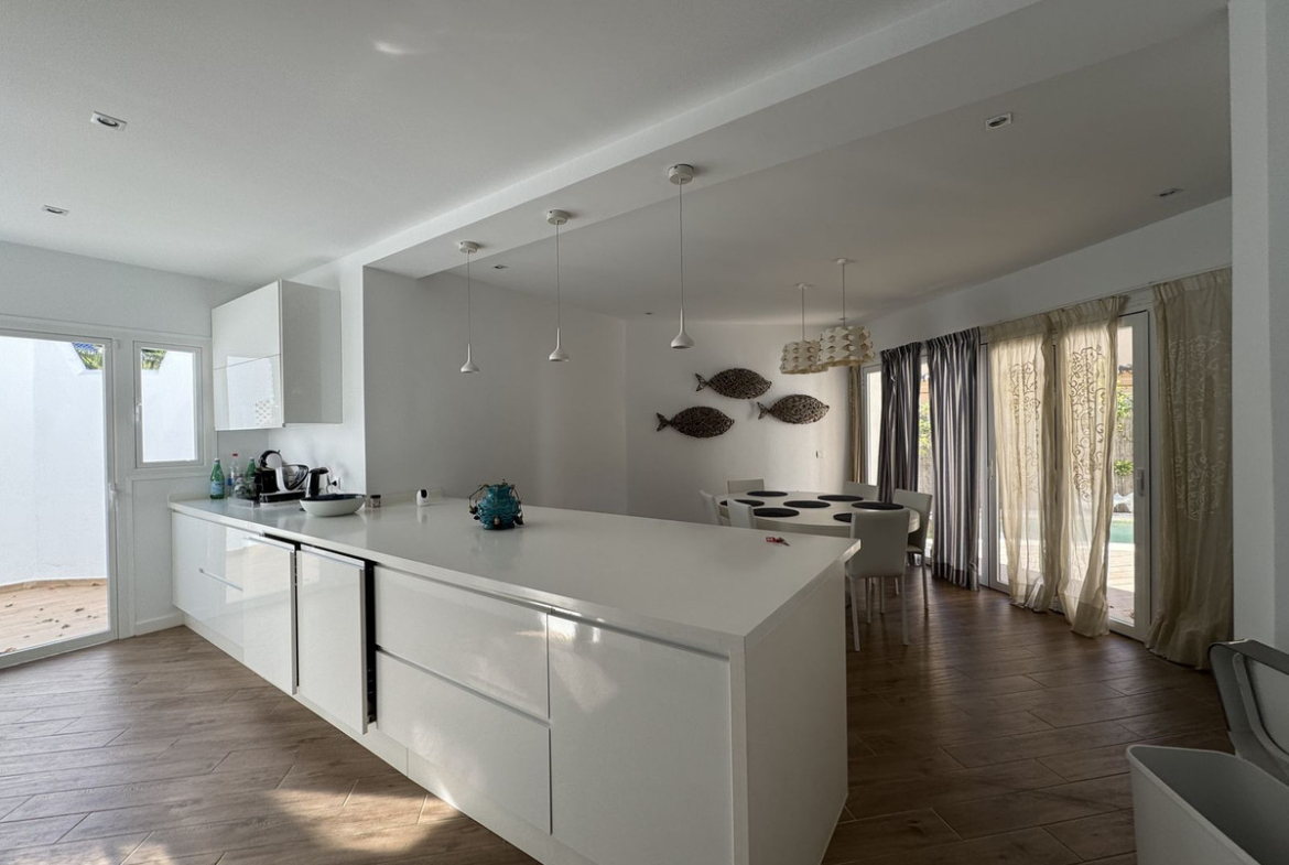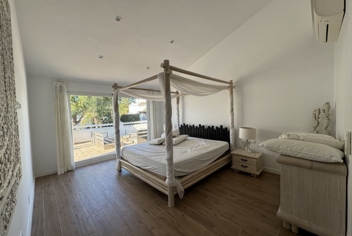 Spectacular 4 bedroom villa next to the beach in a urbanisation at Bahia de Marbella. Recently renovated with stunning sea views, it is located within the exclusive double security complex Las Dunas de Bahía de Marbella.