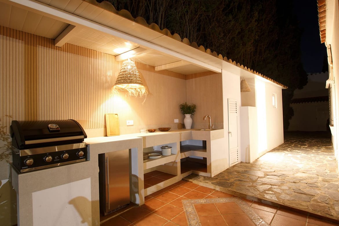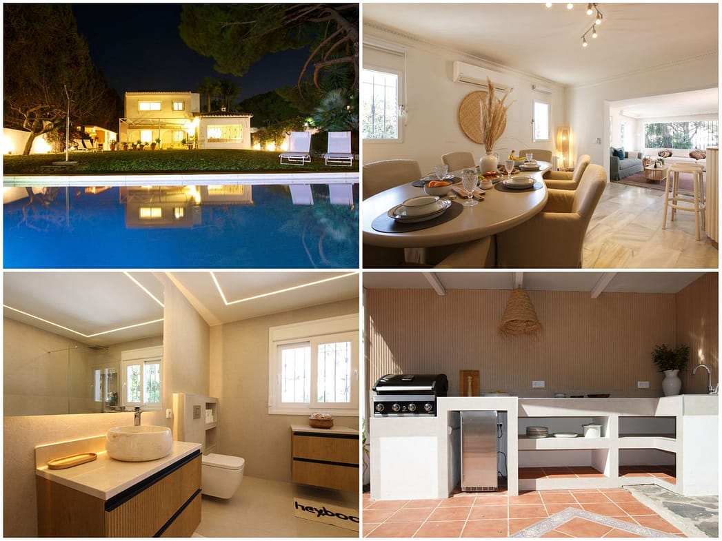 The house has 4 bedrooms and 3 full bathrooms (one of the full bathrooms is outside the main house and next to the exterior kitchen and pool area, it has been totally refurbished his year). The villa has private parking for 3 bigger or 4 smaller cars (they need to be parked one behind the other) and also there is space in front of the villa to park several cars (just on the street in front of the house). There is a private pool and a large private green garden. The villa and the pool area are private and not overlooked. There are 20 + beautiful garden lamps that illuminate the exterior areas of the house in the night.