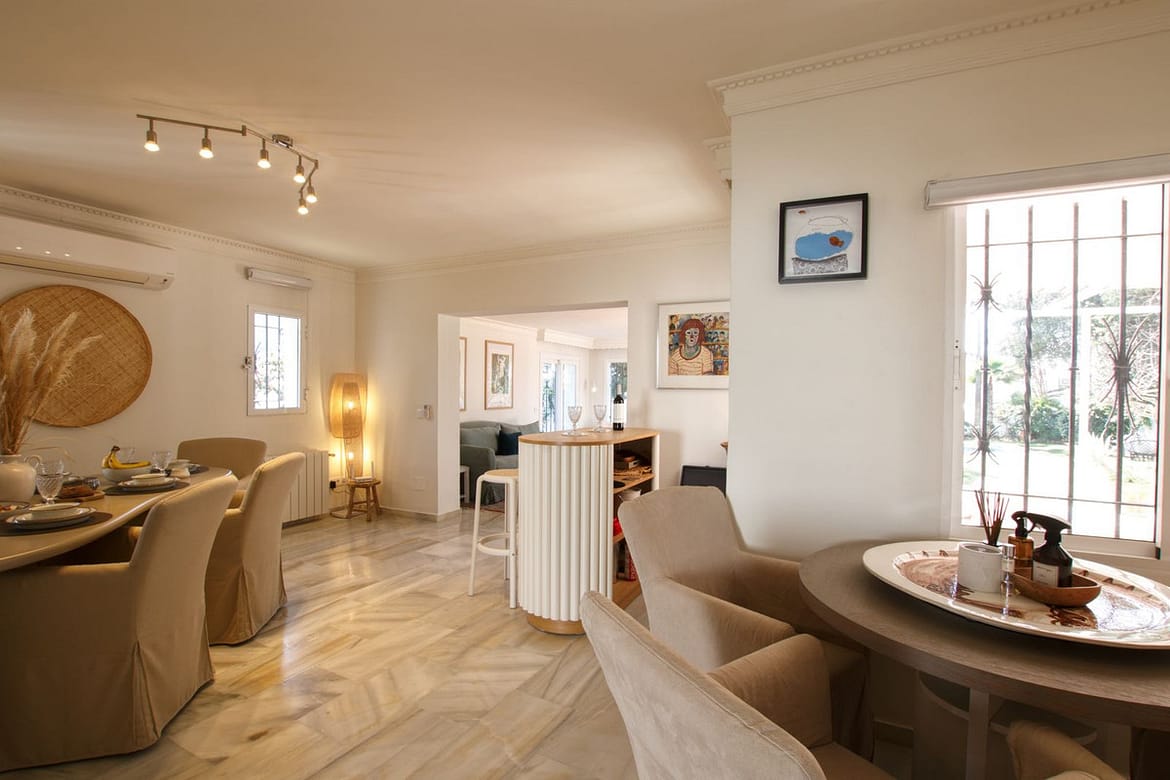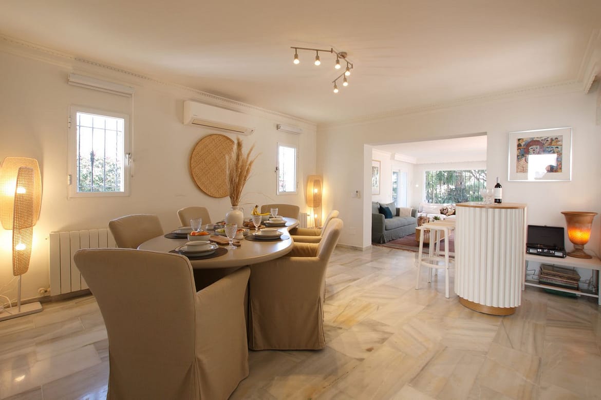 From Costabella (Marbella East) you arrive to Marbella old city center (Ricardo Soriano avenue) by car in less than 10 minutes. This house is being rented for a winter period with montly price of 9000 Eur per month plus utilities (a fixed monthly fee) and from April until end September the prices are per night or per week (short term rental periods) so please consult prices and availability with us.
