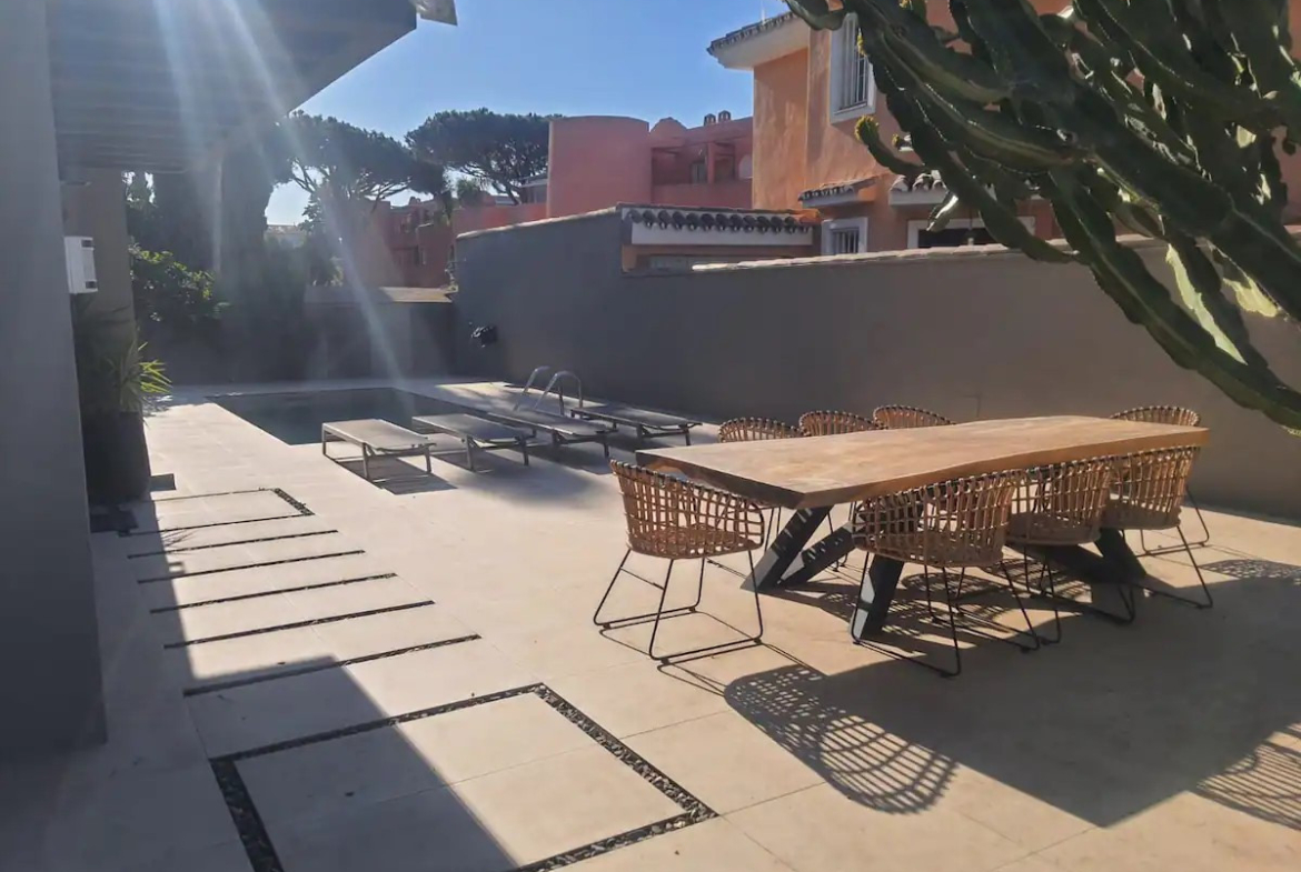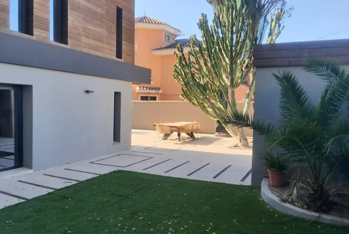 This stunning villa offers luxury living in the heart of Costabella, Marbella East, only 300 meters from one of the best beaches in Marbella. The complete house is tiled with large Italian stone tiles, has tick oak doors with concealed hinges and a fully fitted kitchen with Bosh appliances.