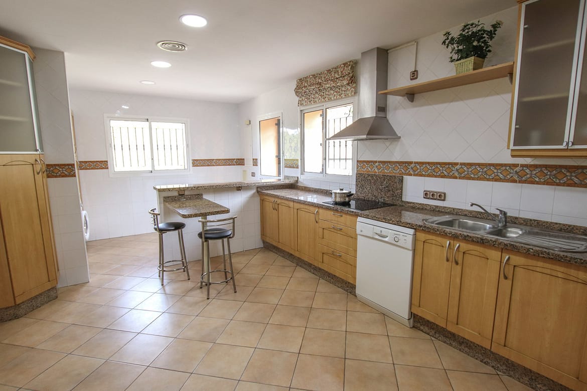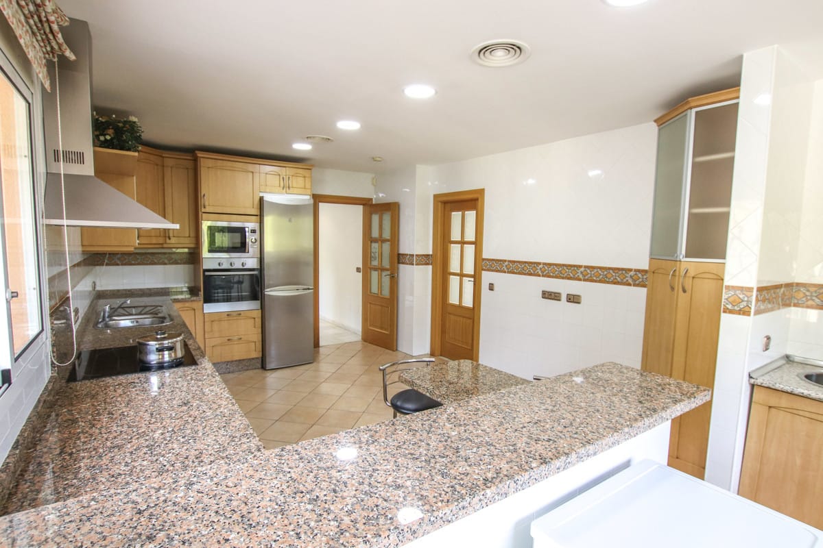 Good size living and dining area with covered terrace towards the nice private garden with good sized pool. Large fully fitted kitchen.