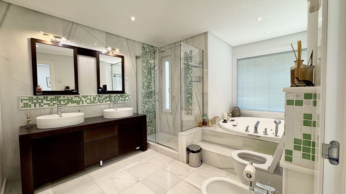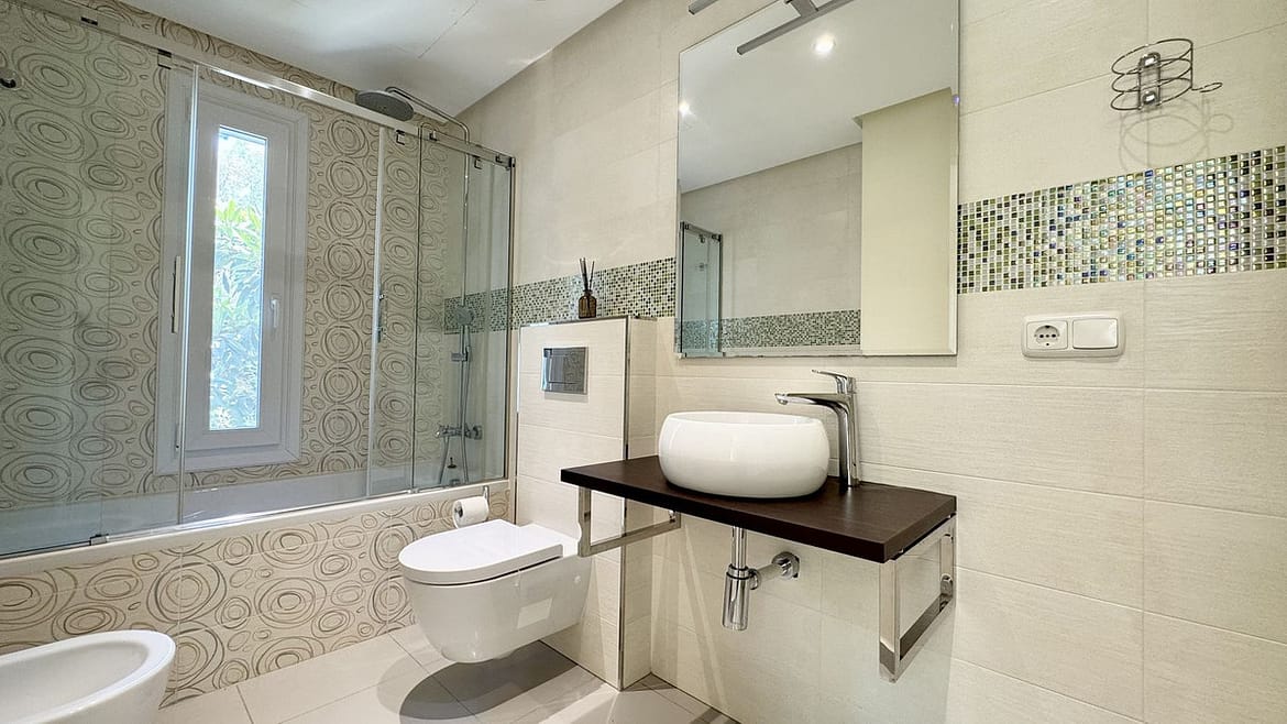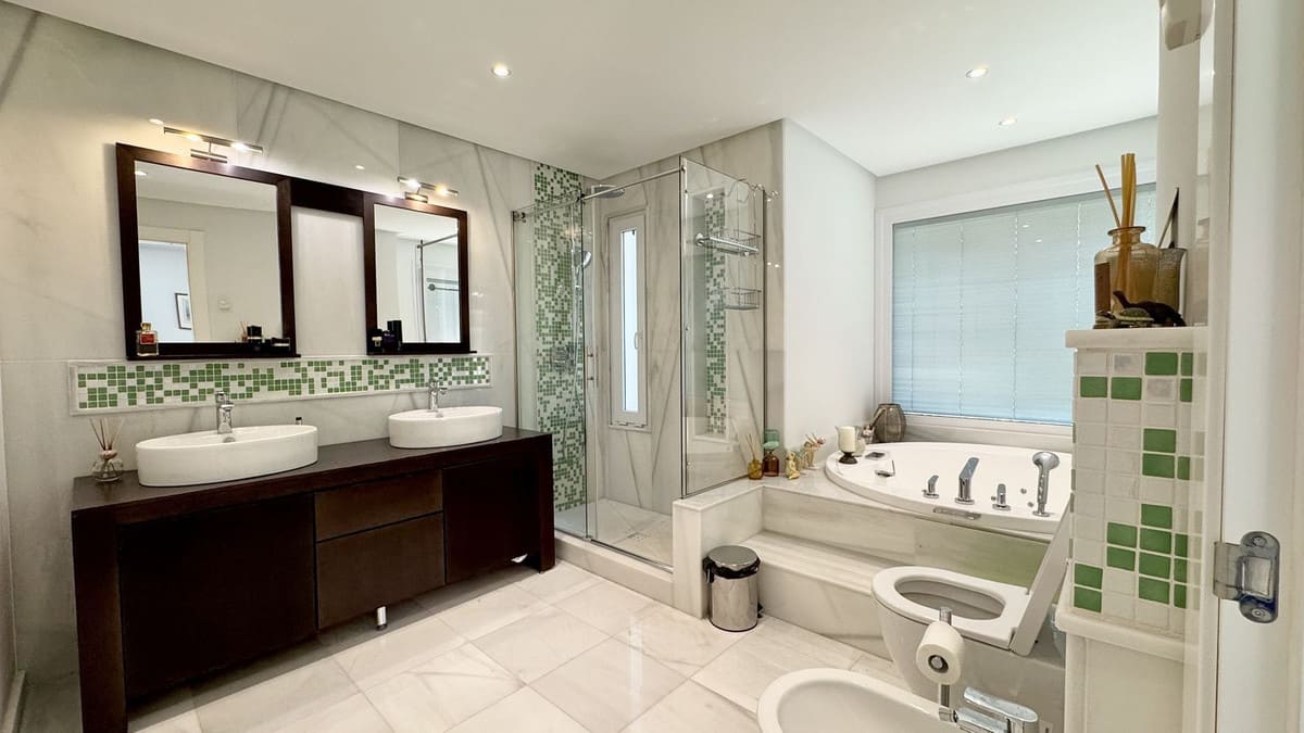 It features 4 bedrooms and 4 bathrooms, including a master suite with jacuzzi, as well as a private hammam with shower and toilet. There is also a separate entrance, ideal for creating an independent space for staff or guests with a bedroom and bathroom.