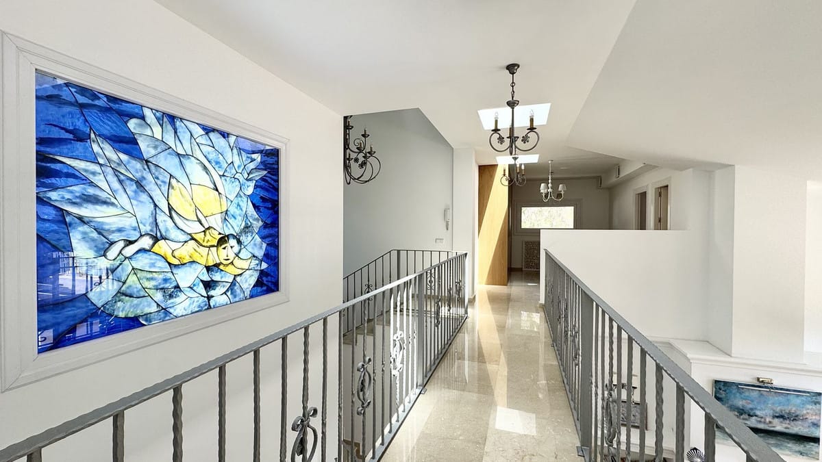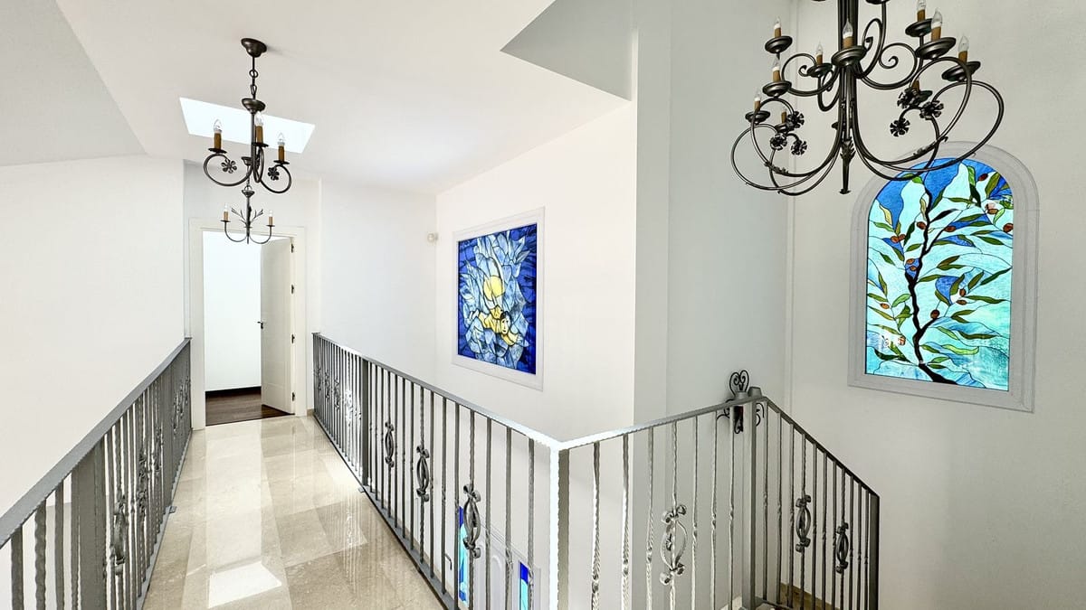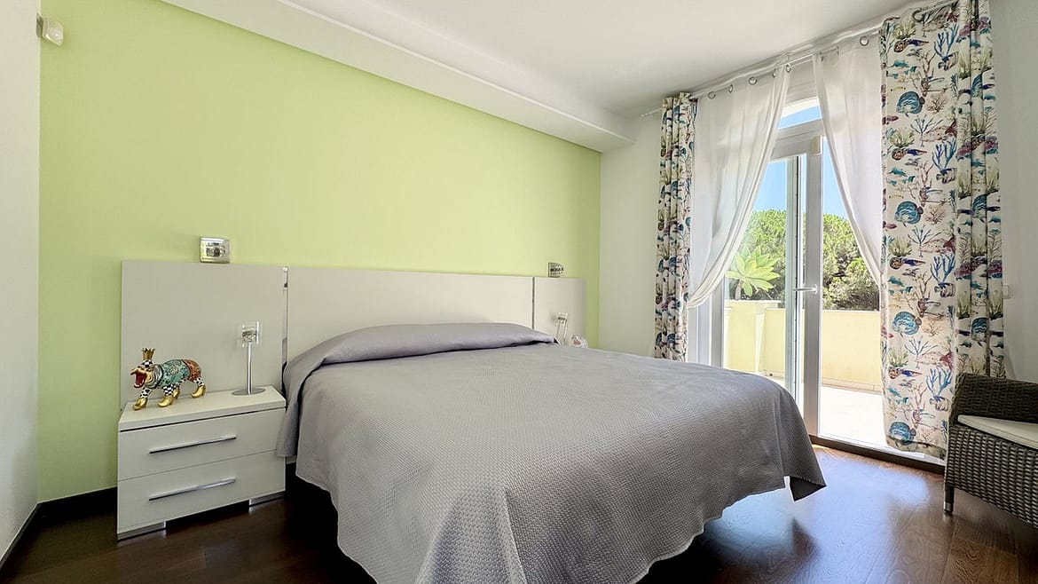 This elegant villa, built in 2014, is located just 250 meters from the sea in one of the most prestigious areas of the coast. The property has never been rented out and is in immaculate condition. It boasts a stylish, bright interior with large stained-glass windows and beautiful open views.