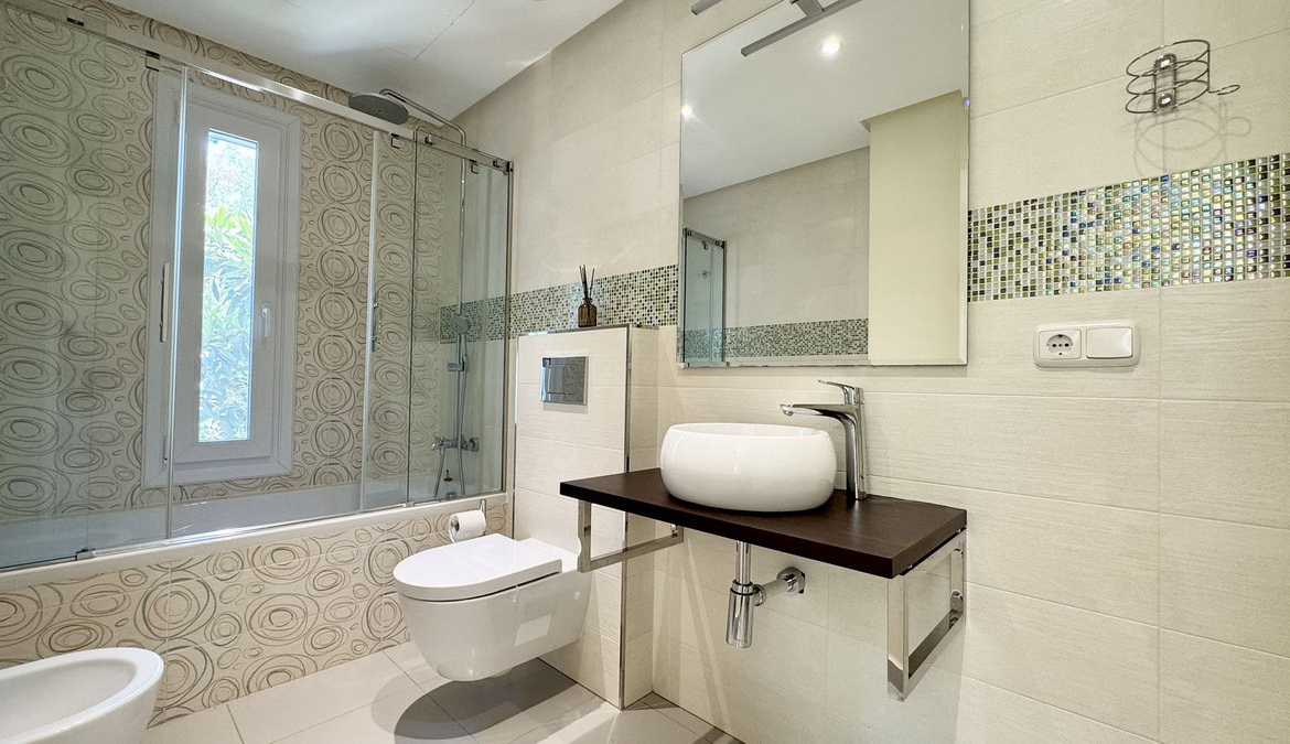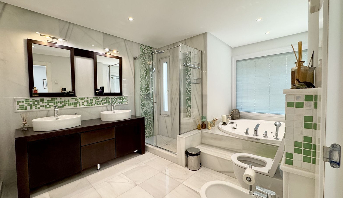 It features 4 bedrooms and 4 bathrooms, including a master suite with jacuzzi, as well as a private hammam with shower and toilet. There is also a separate entrance, ideal for creating an independent space for staff or guests with a bedroom and bathroom.