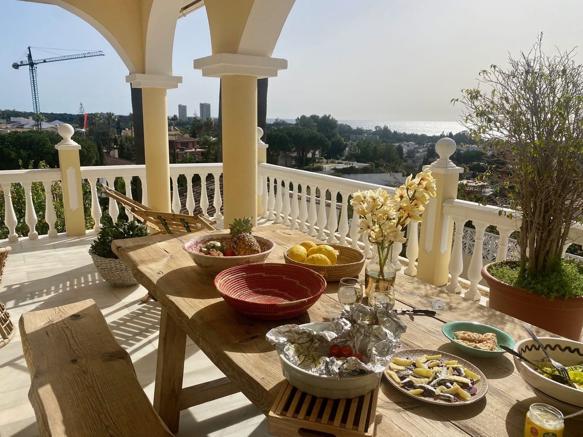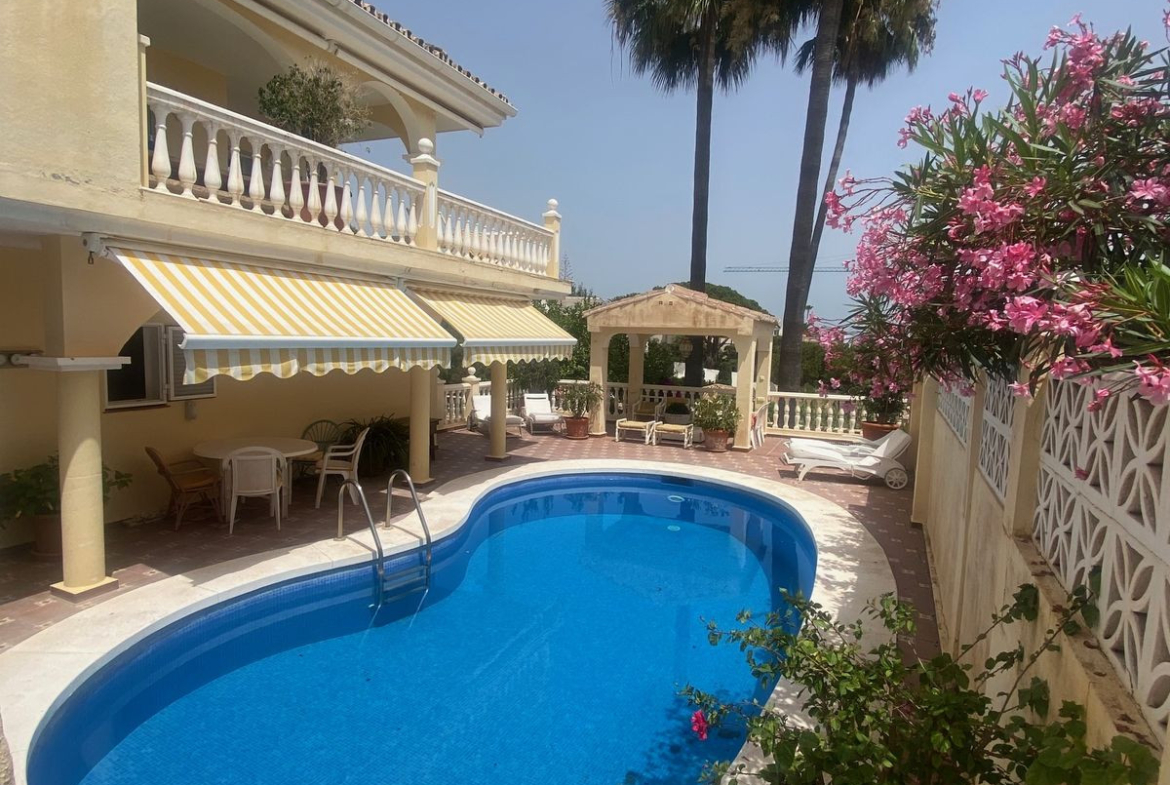 This beautiful villa is located in the best part of Elviria, a luxury urbanisation in the east of Marbella, surrounded by great restaurants and shops, a tennis academies and a beautiful 18-hole golf course Santa Maria Golf and only 30 minutes from the airport. This 4-bedroom villa has 3 bathrooms, a great living room, a kitchen and an extra toilet for visitors. The living room is surrounded by a great terrace with a BBQ corner overlooking the sea. Great garage!