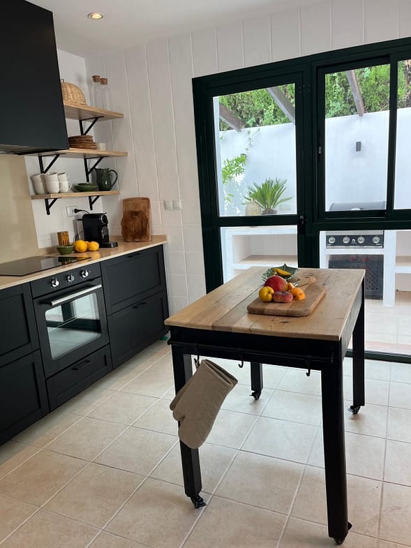 At the rear of the house, there is a new, Scandi Style fully equipped kitchen has the added advantage of leading directly out to an additional terrace. Furnished with a built-in barbecue and shaded dining area, perfectly placed for dining in those warmer sunny evenings. The perfectly placed water feature further enhances this ‘plaza’ where dining under the stars in the summer air is sure to aid your relaxation.