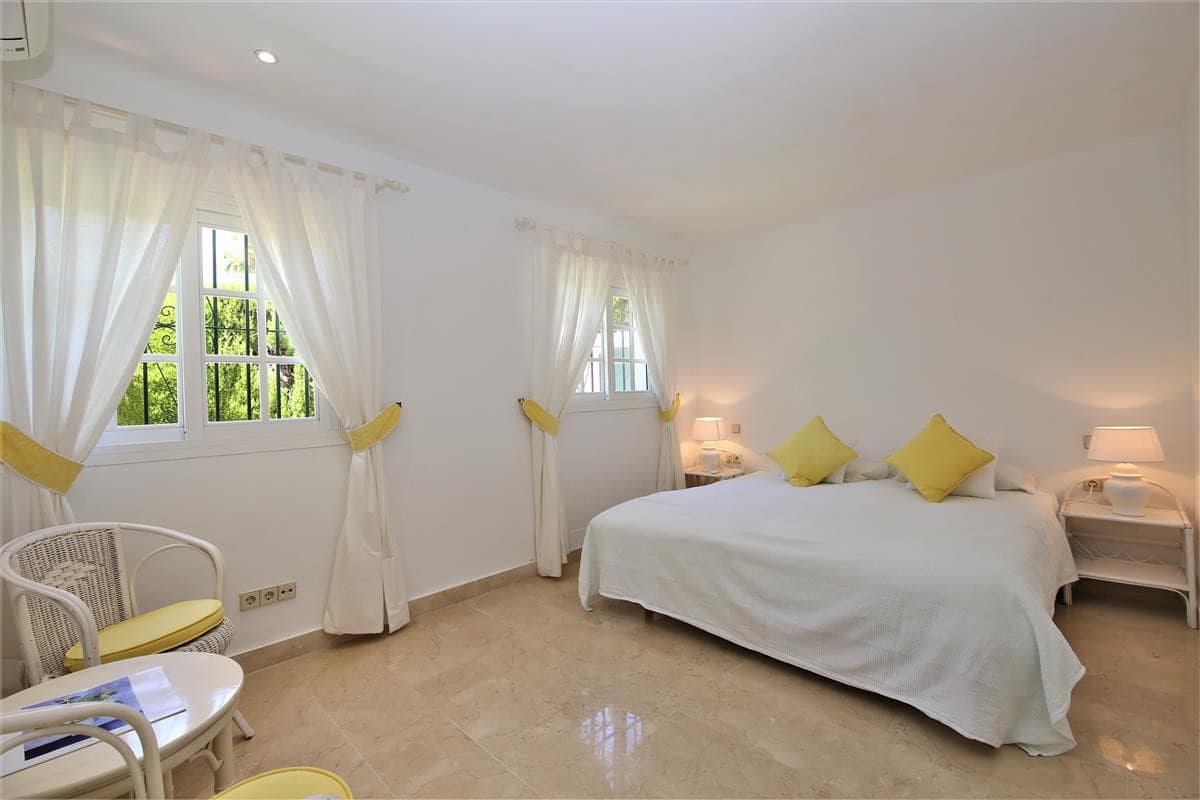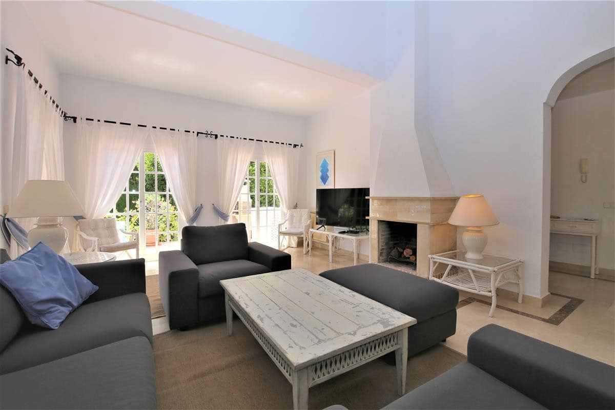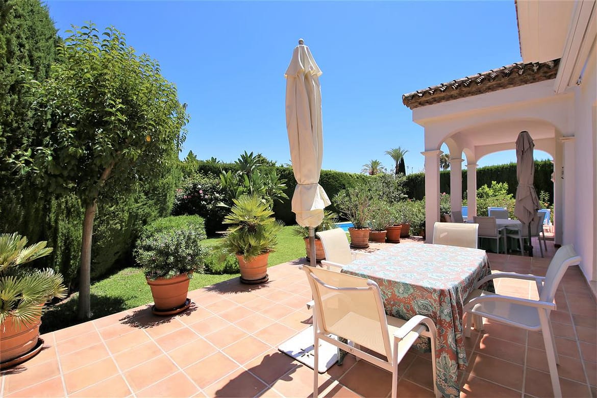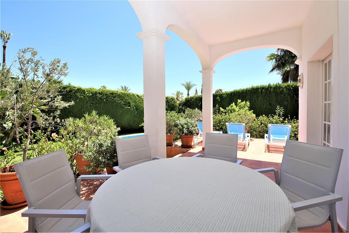 This lovely spacious villa is just a few minutes' drive from the beach and Puerto Banus marina. It is set in the exclusive closed Marbella Country Club urbanisation and it is only available for families, golfers and married couples. This stylish and well appointed villa is in immediate reach of the Las Brisas and Aloha Golf golf courses. All the amenities you could require, from the shops and restaurants to the bars and nightlife are just a short stop away in Marbella. As soon as you enter the villa, you will notice its welcoming and friendly family atmosphere. The large living room and four bedrooms provide comfortable accommodation for up to six guests. The entire property has independent air-conditioning units in all bedrooms and living room. Off the kitchen, you will find a lovely seated outdoor dining area which provides the perfect location for alfresco dining, a built-in charcoal BBQ is also available. The private garden and the surrounding areas around the good sized private pool are ideal for sunbathing and relaxing. A private parking space is also available along with plenty of street parking inside the community. Overall, this villa offers quality accommodation in a very relaxed location.