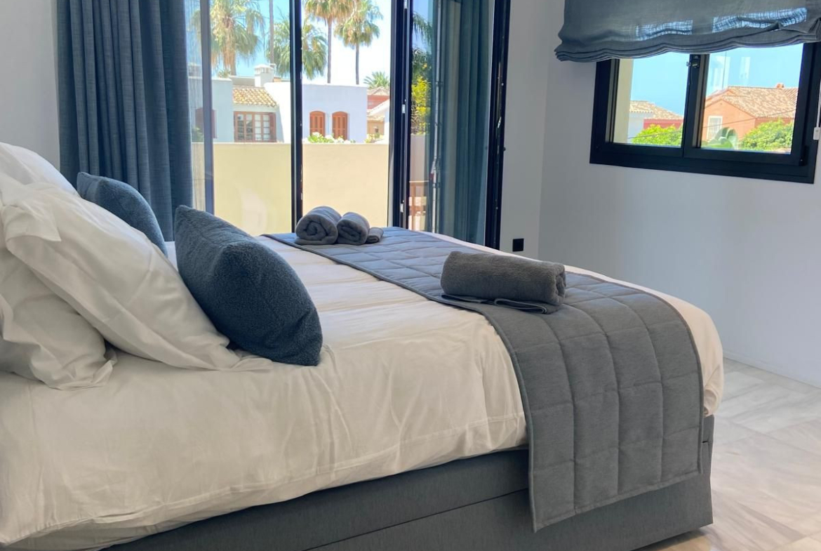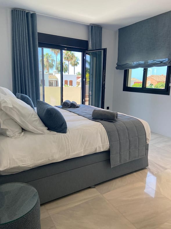 Luxury Villa with private pool, wifi and air conditioning. The villa in Marbella is the perfect accommodation for a stress-free holiday with your loved ones. Consisting of a living room, a well-equipped kitchen, 4 bedrooms and 3 bathrooms, the 350-sqm property can accommodate 8 people. Additional amenities include high-speed Wi-Fi (suitable for video calls), a smart TV with streaming services, air conditioning, a washing machine, a dryer and beach/pool towels. 4 high chairs and 2 cots are also available. Discover this holiday home with a private outdoor area with a heated pool, garden, open terrace, covered terrace, 3 balconies, barbecue, garden and outdoor shower. The property is close to the beach, there are public transport links within walking distance and there is a tennis court 15 minutes away. Moreover, there are several restaurants and leisure facilities in the vicinity. 2 parking spaces are available on site and one parking space is available in a garage. Pets and smoking are not allowed. This property has light and water saving features.