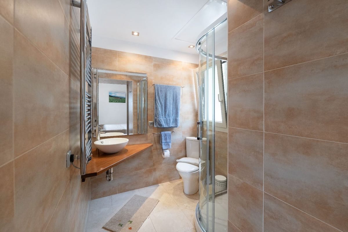 The villa boasts 4 spacious bedrooms, each featuring large built-in wardrobes and a private en-suite bathroom. Additionally, there is a guest bathroom on the ground floor. Enjoy a multi-level living room with a cozy fireplace and direct access to the beautifully landscaped garden, creating a perfect indoor-outdoor living experience.