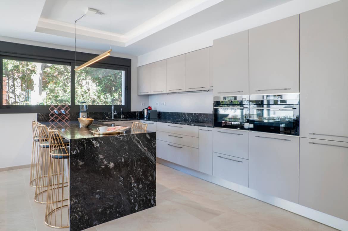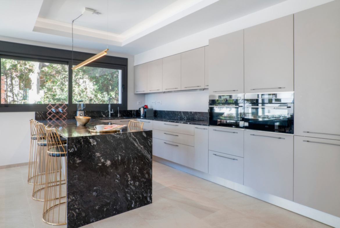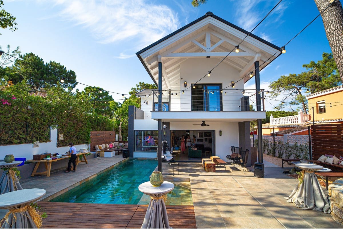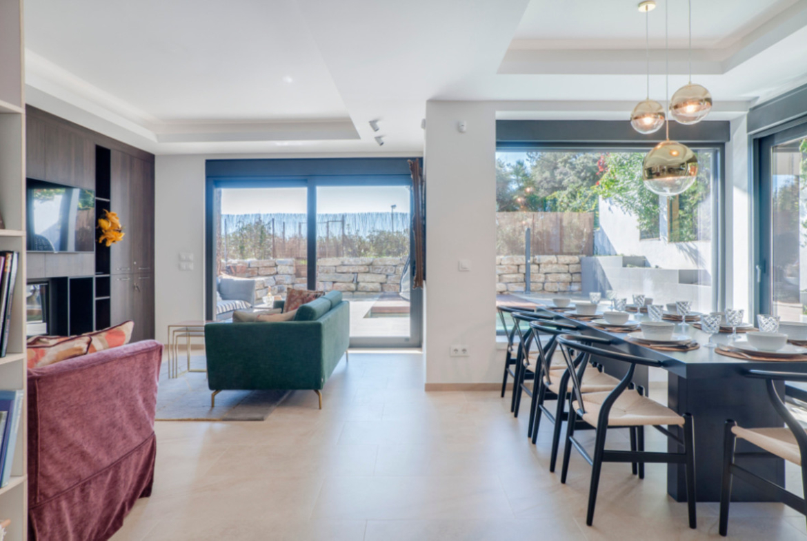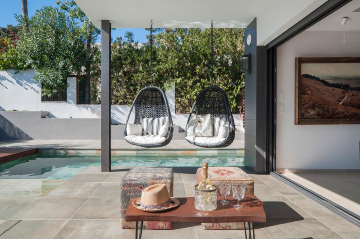 Tucked away in the leafy suburbs of Artola Baja in East Marbella, Ligera is a supremely stylish and spacious villa with a unique design, ready to welcome its lucky guests! This is a dream home for both relaxation and entertainment, with an ample garden and pool terrace, spacious open-plan living and dining areas, all brand new and very tasteful. The huge set of floor-to-ceiling patio doors seamlessly connects inside and outside for plentiful lounging, dining and entertaining options.