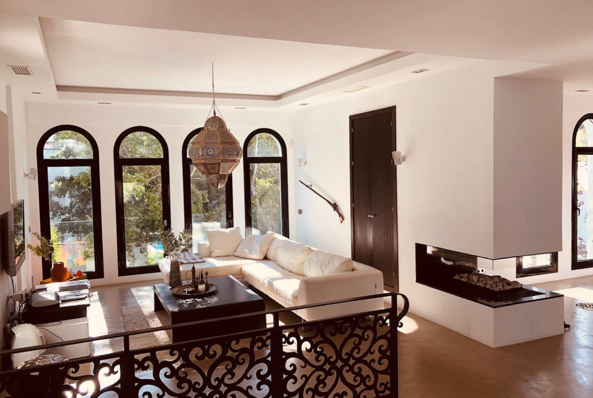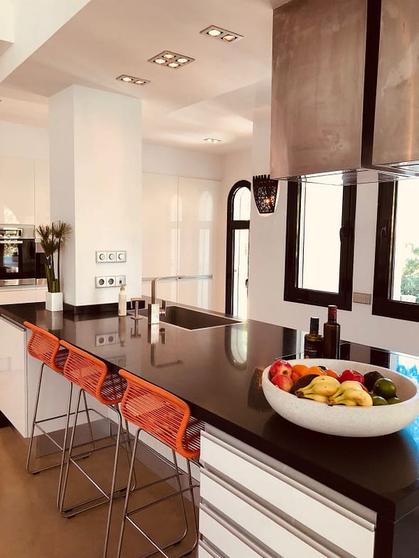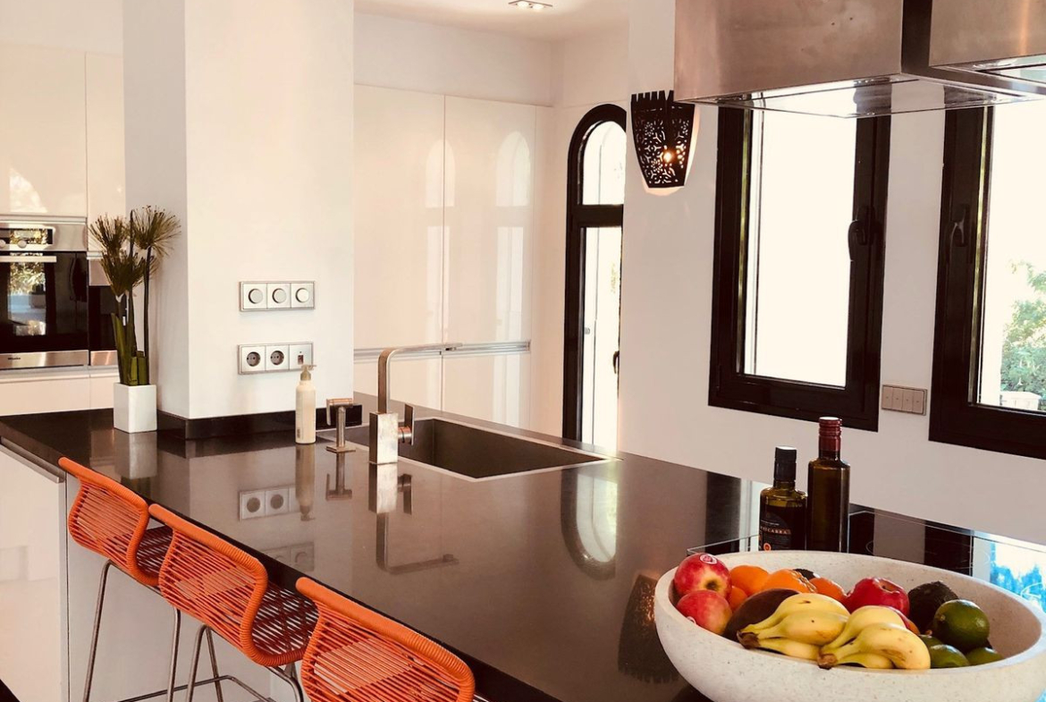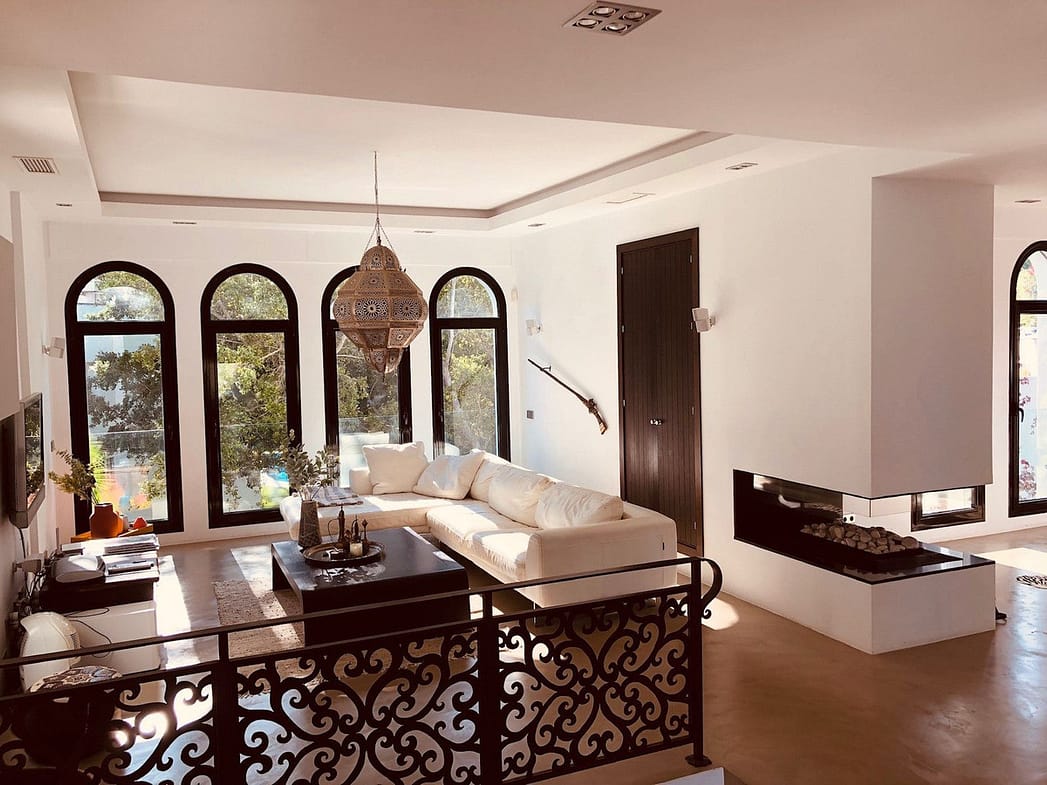 Available for longterm rent from AUGUST/SEPTEMBER 2024 ! Spacious modern house located in Atalaya de Rio Verde. 15-20 min walk to Puerto Banus with all shopping, restaurants and bars. View of Nueva Andalucia and close to the golf courses of Las Brisas and Aloha. 8-10 cafes and restaurants as well as grocery store, butcher, pharmacy, health club, dry cleaning, bicycle rental etc. in the surrounding area.The house was completely renovated in 2008 in modern style, and is well maintained. Las Lagunas is a "community" consisting of 14 villas located in a 20-acre lush garden where most of the houses are with permanent residents. Here there are 2 pool areas that both have their own children's pool. Very quiet location within walking distance to beach and shopping. The house has 4 bedrooms, 3.5 bathrooms. Laundry room with washing machine and dryer. Garage. Alarm with perimeter protection. Under floor heating. Modern kitchen with all utensils (Miele appliances), but own breakfast-terrace with Gandia Blasco furniture under the palm trees. Living room with TV/stereo, gas fireplace. Dining room with seating for 8-10. Large roof terrace with sun loungers and large lounge from Dedon under large pergola roof. Gas barbecue, kitchenette, outside shower, TV, stereo etc. make this terrace a wonderful place to be.