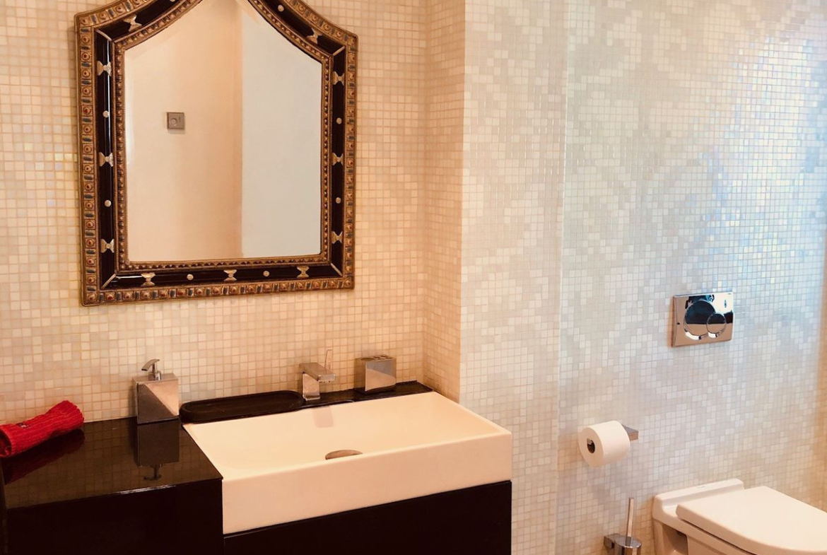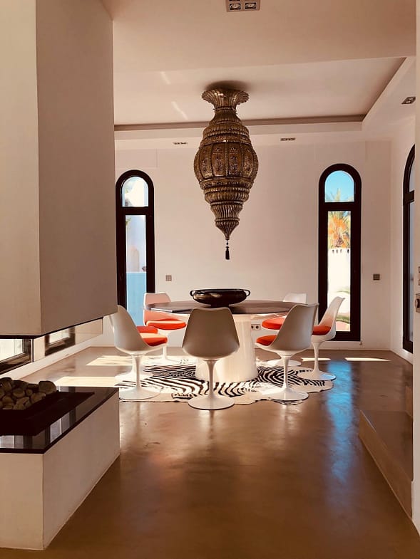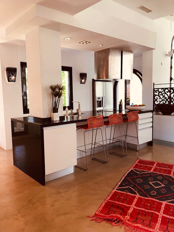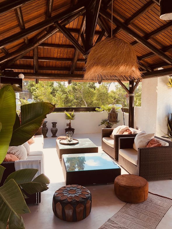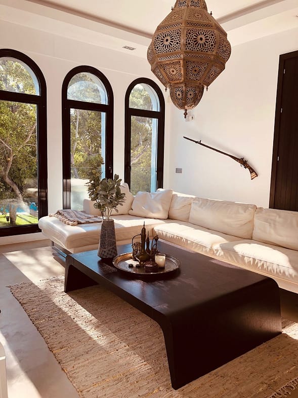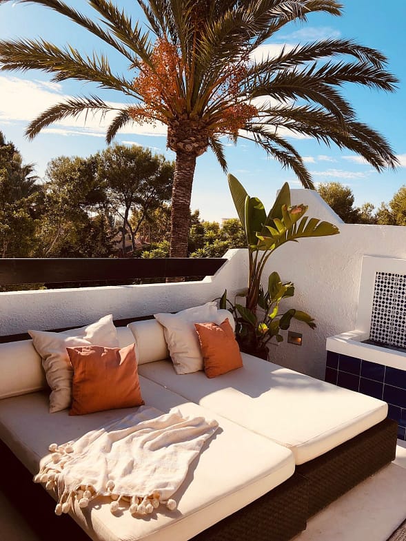 Available for longterm rent from AUGUST/SEPTEMBER 2024 ! Spacious modern house located in Atalaya de Rio Verde. 15-20 min walk to Puerto Banus with all shopping, restaurants and bars. View of Nueva Andalucia and close to the golf courses of Las Brisas and Aloha. 8-10 cafes and restaurants as well as grocery store, butcher, pharmacy, health club, dry cleaning, bicycle rental etc. in the surrounding area.The house was completely renovated in 2008 in modern style, and is well maintained. Las Lagunas is a "community" consisting of 14 villas located in a 20-acre lush garden where most of the houses are with permanent residents. Here there are 2 pool areas that both have their own children's pool. Very quiet location within walking distance to beach and shopping. The house has 4 bedrooms, 3.5 bathrooms. Laundry room with washing machine and dryer. Garage. Alarm with perimeter protection. Under floor heating. Modern kitchen with all utensils (Miele appliances), but own breakfast-terrace with Gandia Blasco furniture under the palm trees. Living room with TV/stereo, gas fireplace. Dining room with seating for 8-10. Large roof terrace with sun loungers and large lounge from Dedon under large pergola roof. Gas barbecue, kitchenette, outside shower, TV, stereo etc. make this terrace a wonderful place to be.