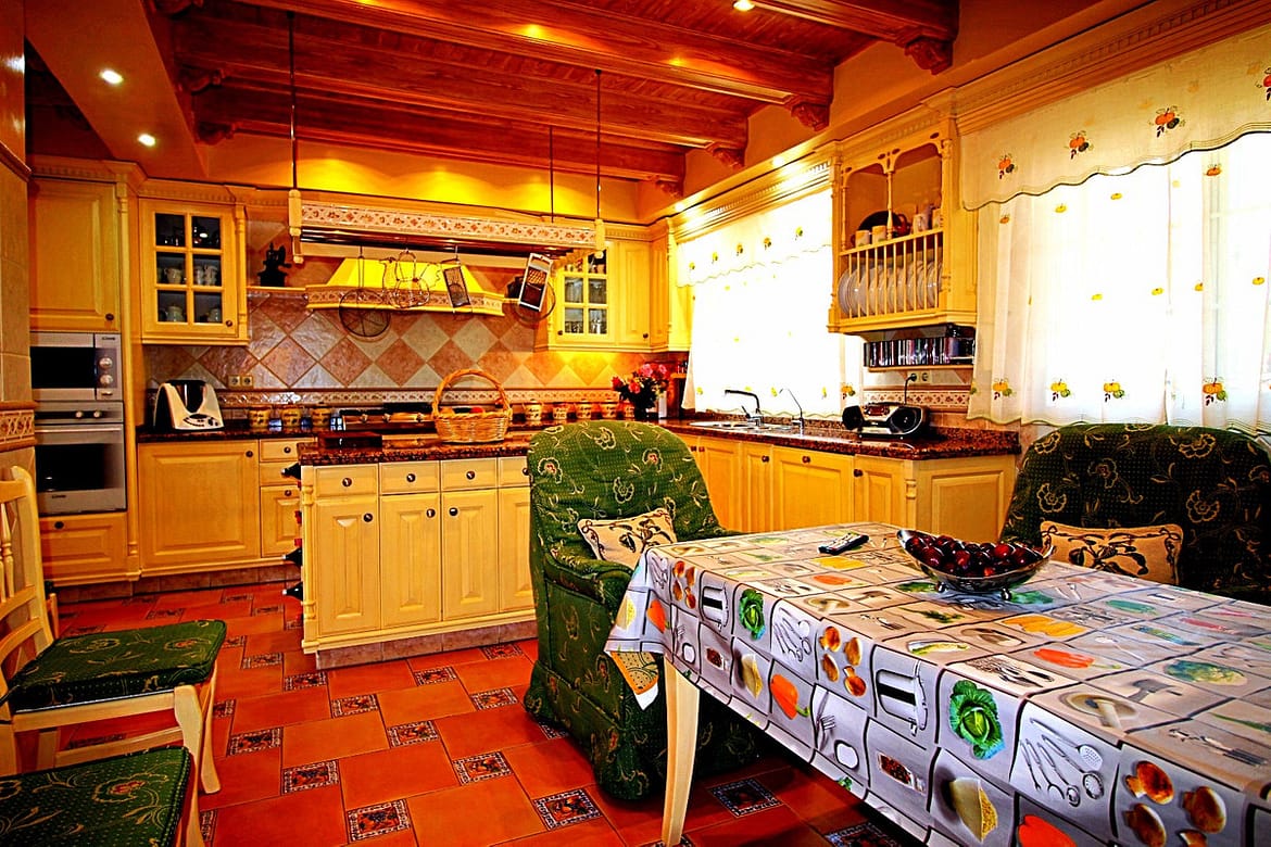 The 4-bedroom villa features a modern kitchen fully equipped including a dishwasher , TV screen and a breakfast area. A flat-screen TV and Blu-ray player are featured.