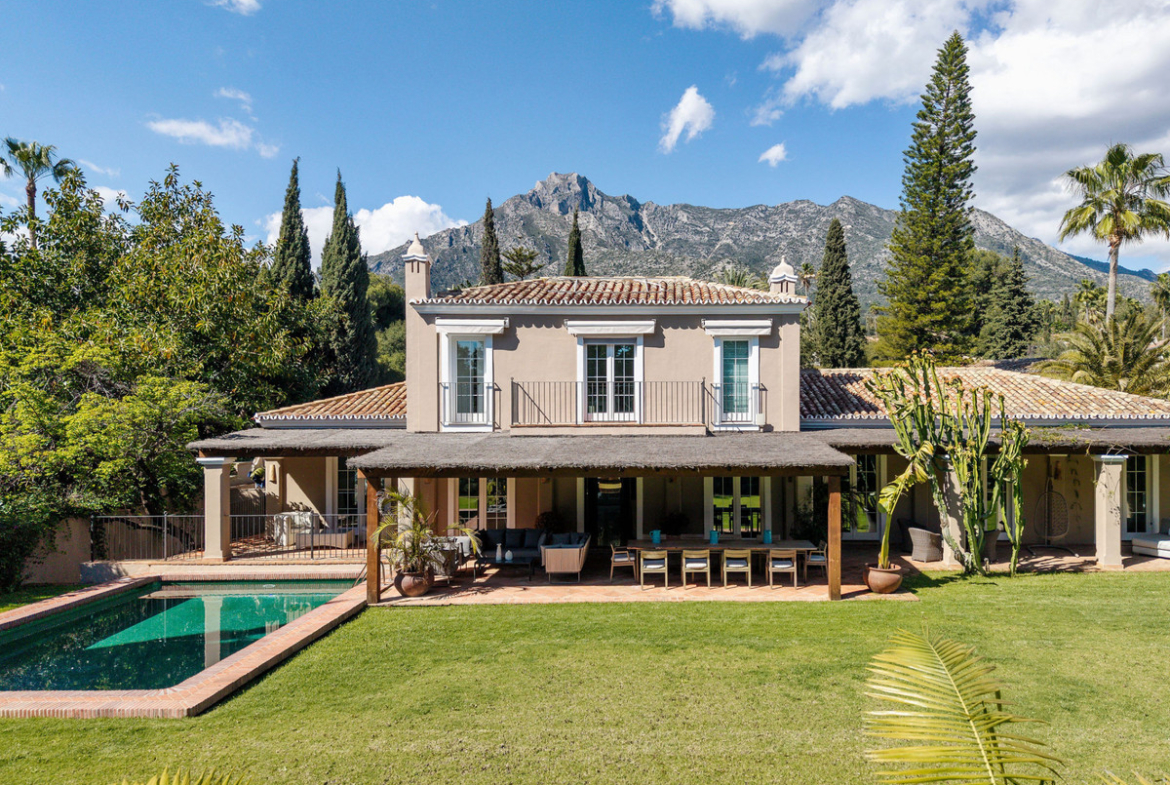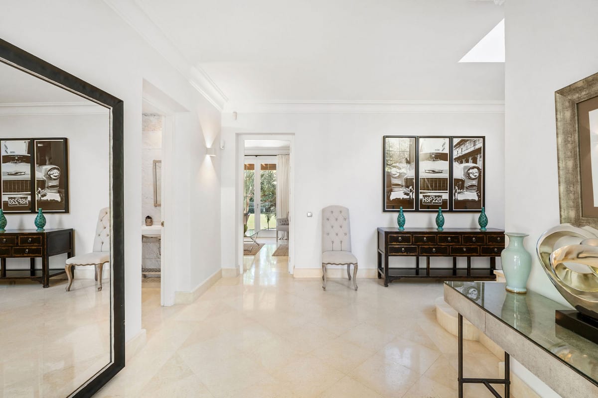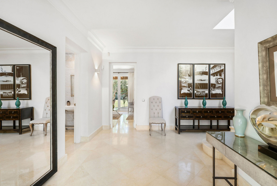 Nestled in the prestigious enclave of Nagüeles, just minutes from the vibrant heart of Marbella, this Mediterranean-style villa seamlessly blends timeless charm with modern luxury. More than just a residence, it’ s an invitation to experience a life beautifully lived. From the moment you arrive, the sense of exclusivity is undeniable. Two entrances, one through a private garage, the other a pedestrian gate leading to the grand entrance offer a glimpse of the refined sanctuary that lies within.