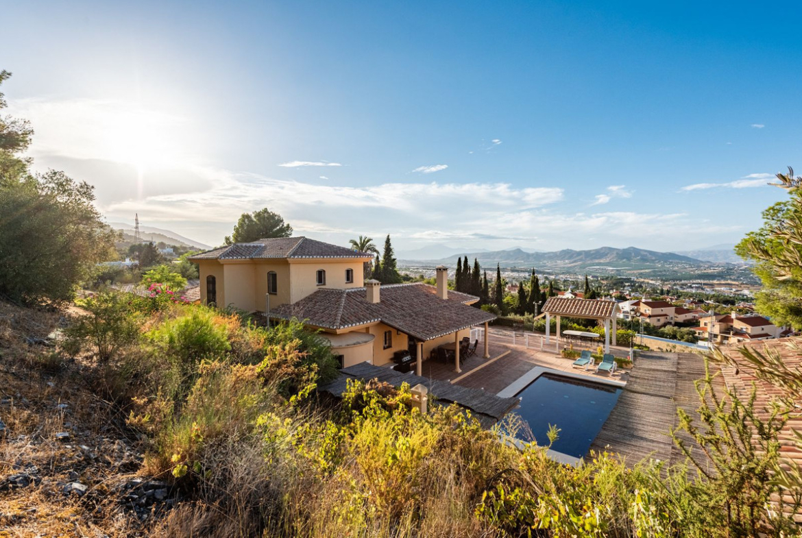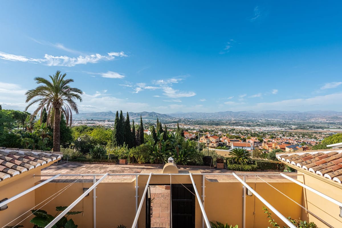 Perched at the foot of the Jabalcuza Mountain, recently declared a Natural Monument by the Junta de Andalucía, El Ksar is a one-of-a-kind estate in Alhaurín de la Torre offering a rare combination of privacy, luxury, and connection with nature. Set amidst lush gardens and abundant fruit trees, it enjoys breathtaking panoramic views of the Guadalhorce Valley, and is located at the end of a quiet cul-de-sac, ensuring absolute seclusion with no passing traffic. Despite its peaceful setting, the property is only a few minutes from the town centre, shops, Málaga city, and the international airport, perfectly balancing tranquillity with convenience.