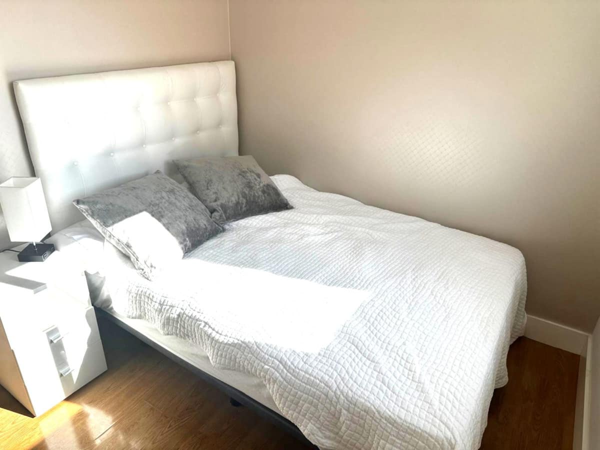 • On the next floor is the spacious kitchen and lounge/dining room, with the master bedroom, walk-in closet and en-suite bathroom.
