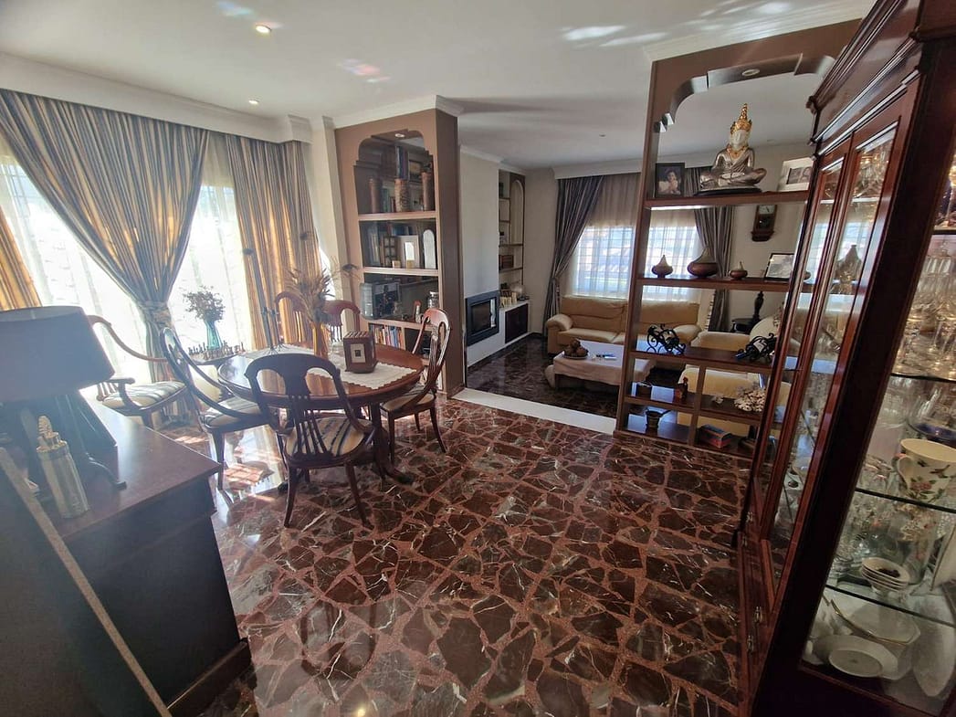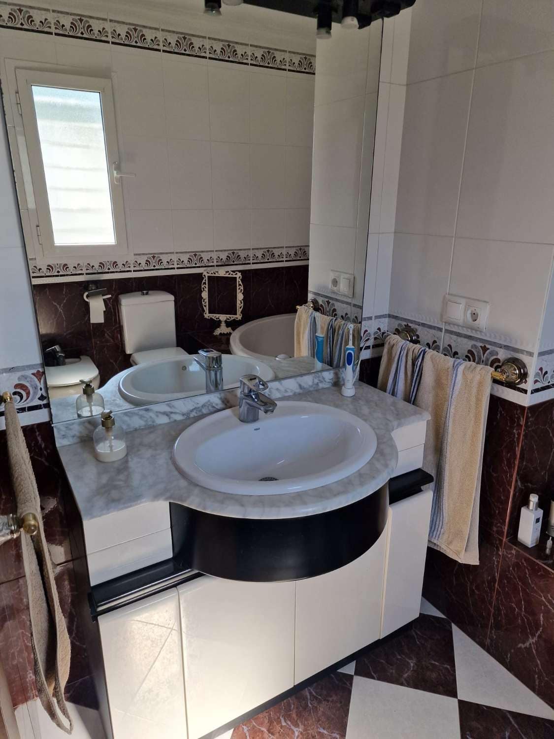 For sale in one of the most sought after urbanizations of Alhaurin de la Torre with walking access to shops, schools, bus stop. On a fenced plot of 1000 meters the villa consists on the ground floor of a living room with fireplace, a double-room dining room, a very large fully equipped high-level kitchen with its dining room and a toilet; on the first floor there are three double bedrooms with built-in wardrobes, two bathrooms, the suite has its own bathroom with dressing room, a fully fitted basement with living room, games room, bar, bedroom, bathroom, sauna, storage room and laundry room, on the plot there is a large swimming pool, built-in barbecue area with summer kitchen, 1 bathroom with shower, several car spaces on the plot, automatic gate, air conditioning throughout the house, double glazed windows, blinds. High-level villa in perfect condition ready to move into immediately.