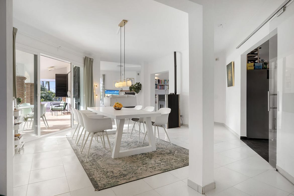 The main villa boasts three spacious bedrooms, each with its own bathroom, ensuring privacy and comfort for the entire family. Large windows throughout the home flood the interiors with natural light, offering breathtaking views of the surrounding landscape and enhancing the warm and inviting ambiance. Next to the living area we find the semi open kitchen and utility room provide both functionality and convenience. Attached to the side of the house we find a dedicated office space offers the perfect environment for remote work or creative pursuits.