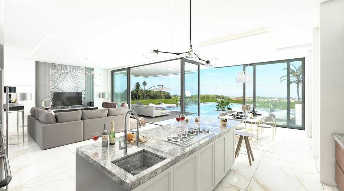 – Interior and exterior floor tiles from SALONI or GRESPANIA (Color and size to choose)