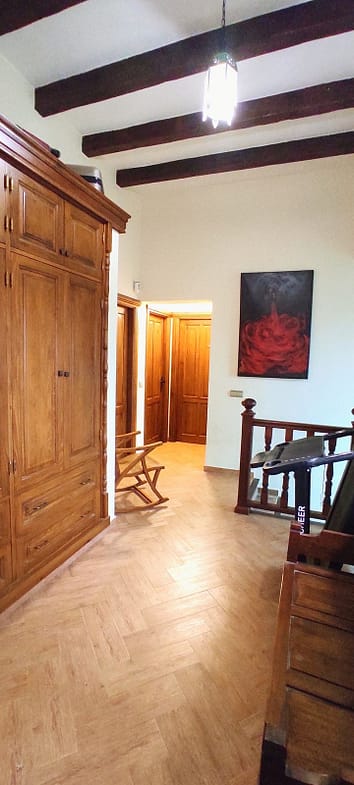 Crafted with exceptional quality throughout, the property boasts 4 spacious bedrooms, 2 bathrooms upstairs, and a guest toilet on the ground floor. The interior features extensive built-in wooden wardrobes and central heating via gasoil, offering comfort year-round.