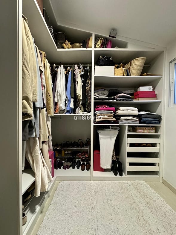 Adjacent is the generous kitchen, boasting rustic touches and modern amenities and ample space for a table that can comfortably accommodate up to 8 people. The private garage is ample for two cars while also serving as a pantry and storage with wall shelving. This villa is distributed with four bedrooms – 3 boast en-suite bathrooms, offering privacy and comfort, while a versatile storage room near the kitchen provides potential for additional living space.