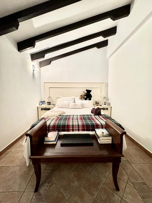 As you enter you are greeted by the front door porch, surrounded by terrace and greenery, with an olive tree as the center of the stage as you walk in. Through themain entrance, the hall welcomes you into an ample living room which is the heart of the villa, featuring an enclosed wood-burning fireplace. The dining room sets the stage for memorable gatherings and intimate meals, adorned with traditional wooden beams and with plenty of natural light.