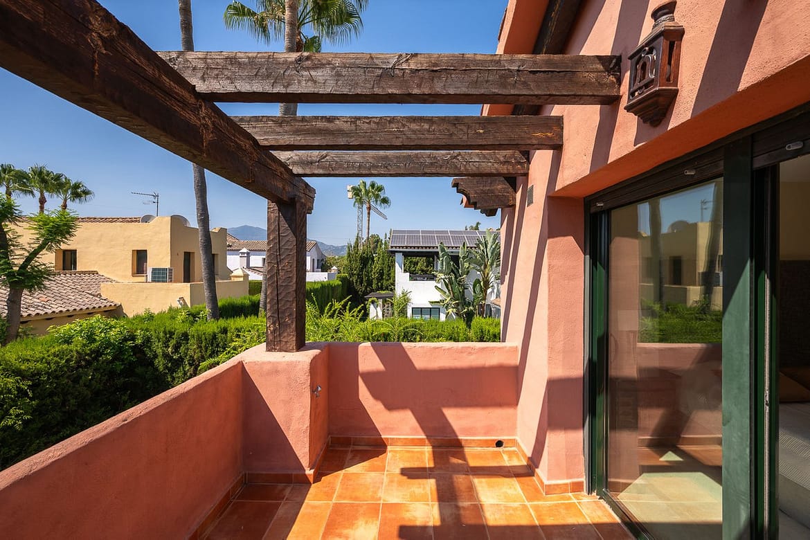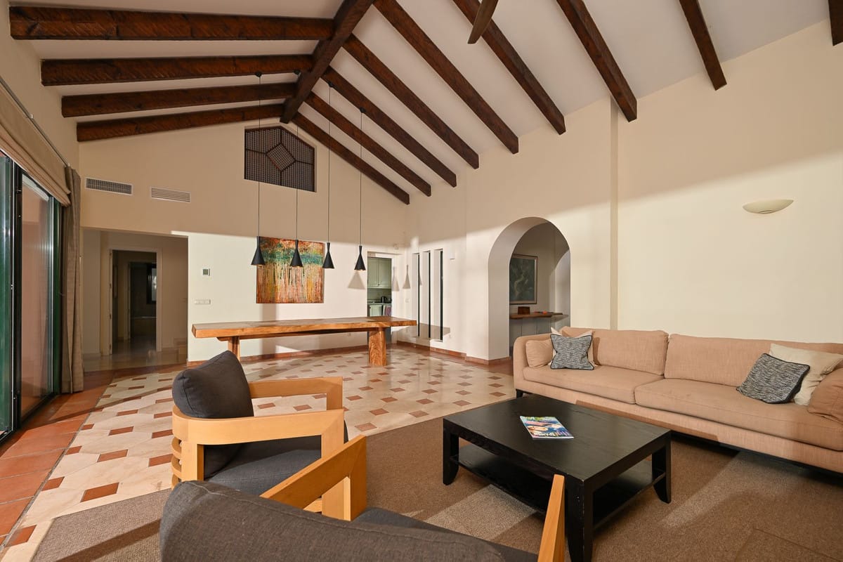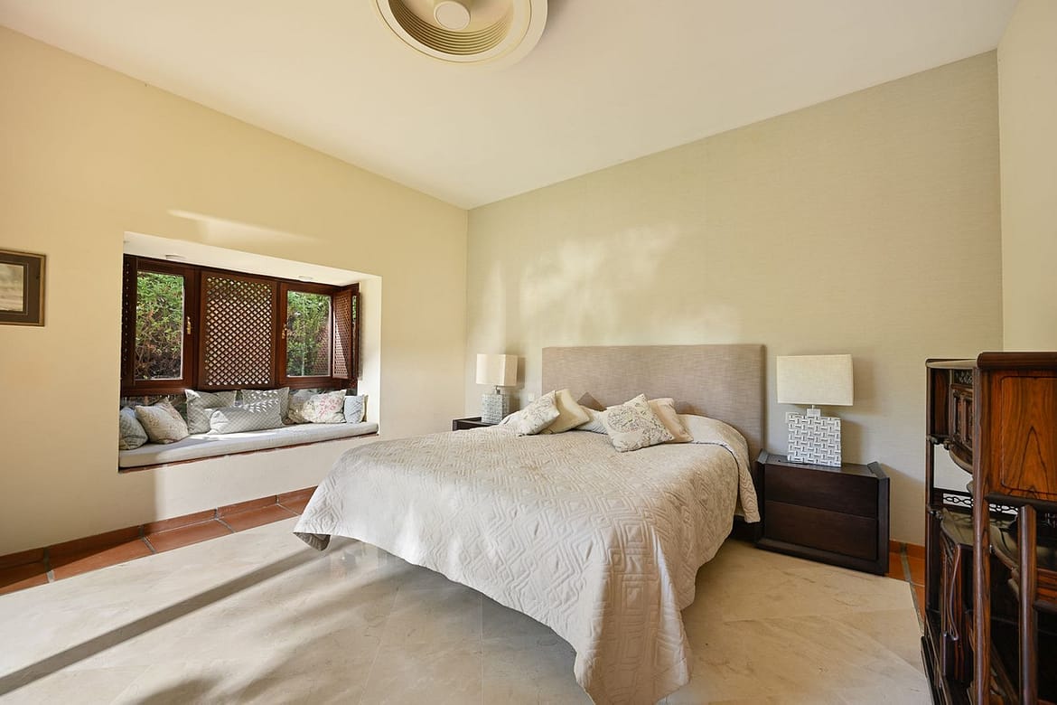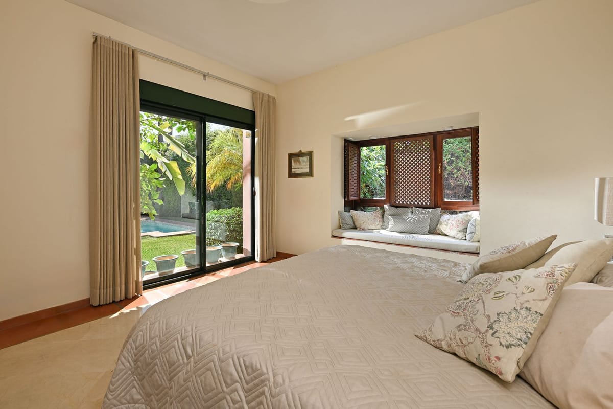 Framed by lush, mature gardens, the home is a celebration of authentic Andalusian charm: vaulted ceilings, wooden beams, bay windows, and handcrafted shutters invite natural light and create an atmosphere that is both elegant and warmly welcoming.