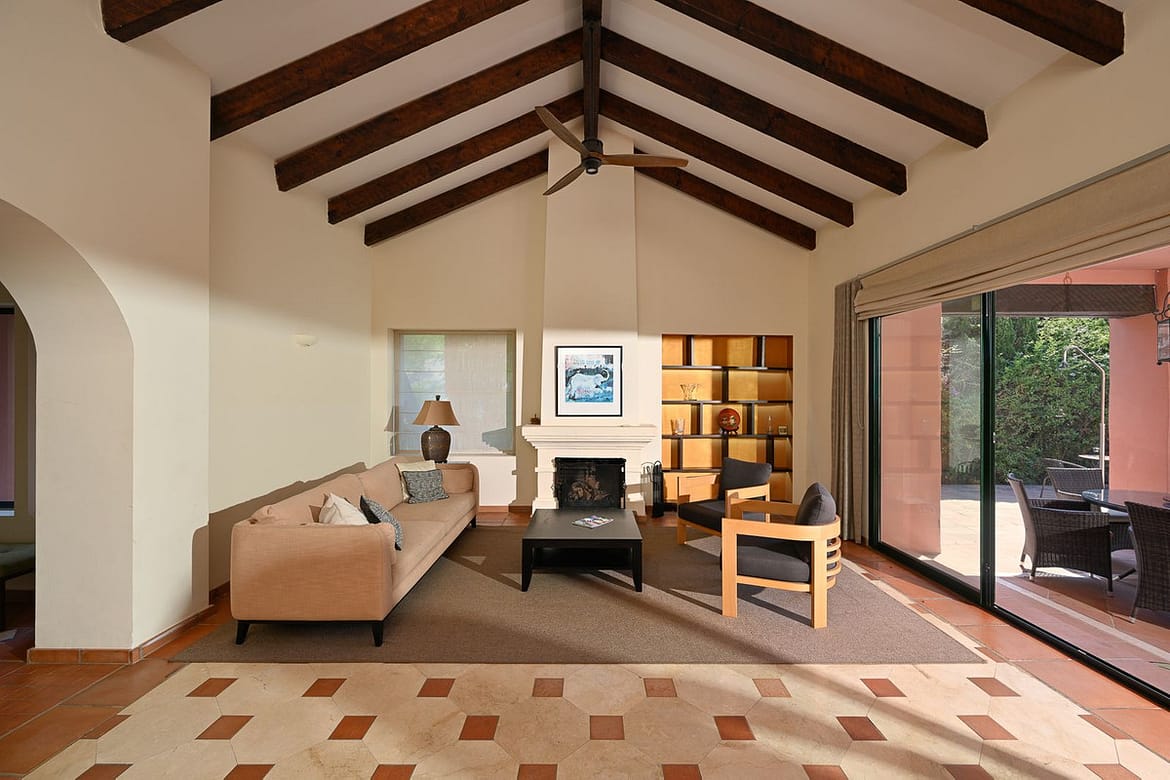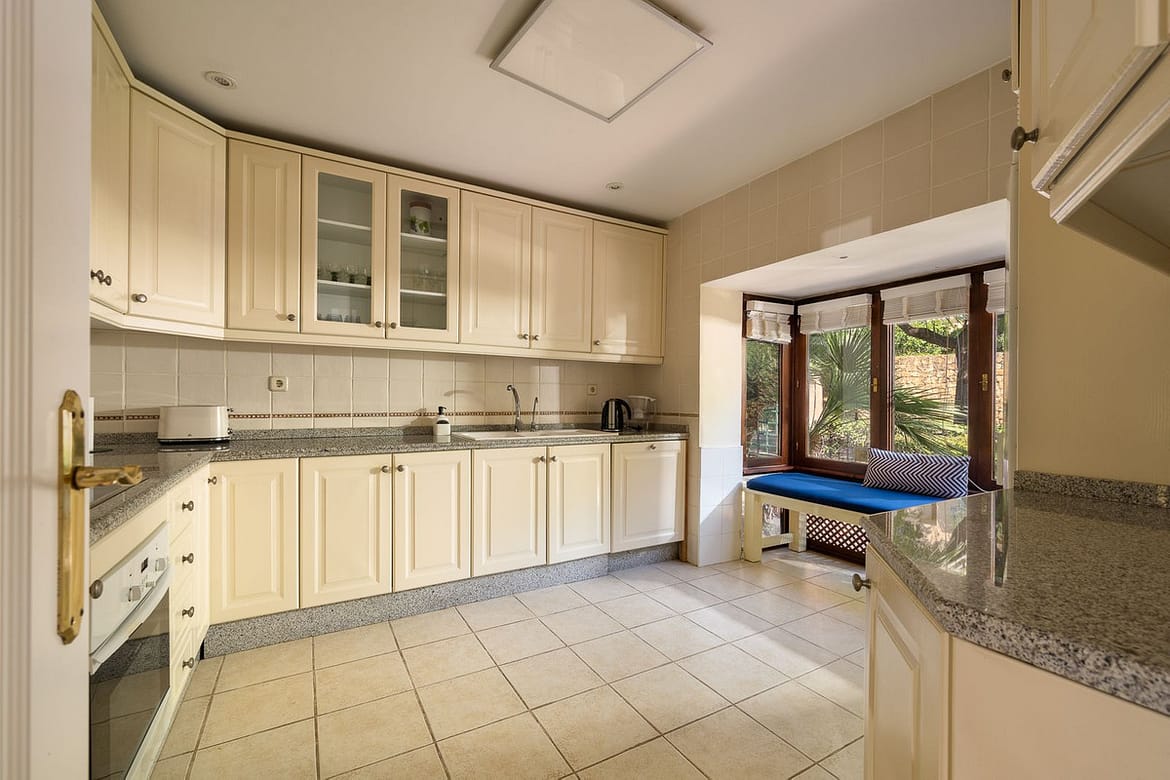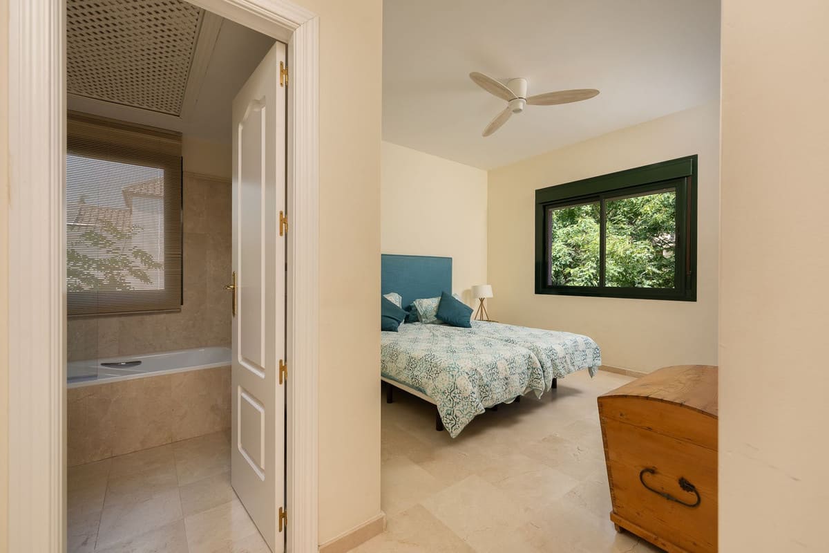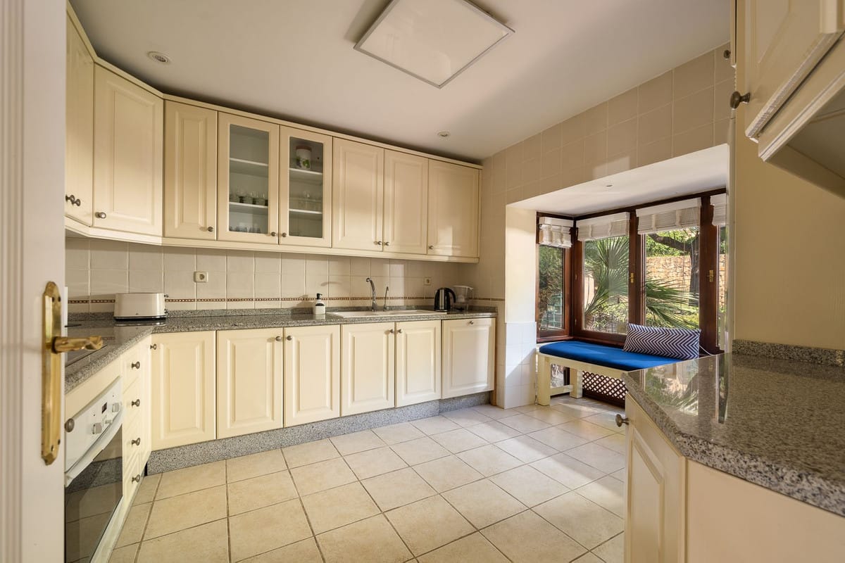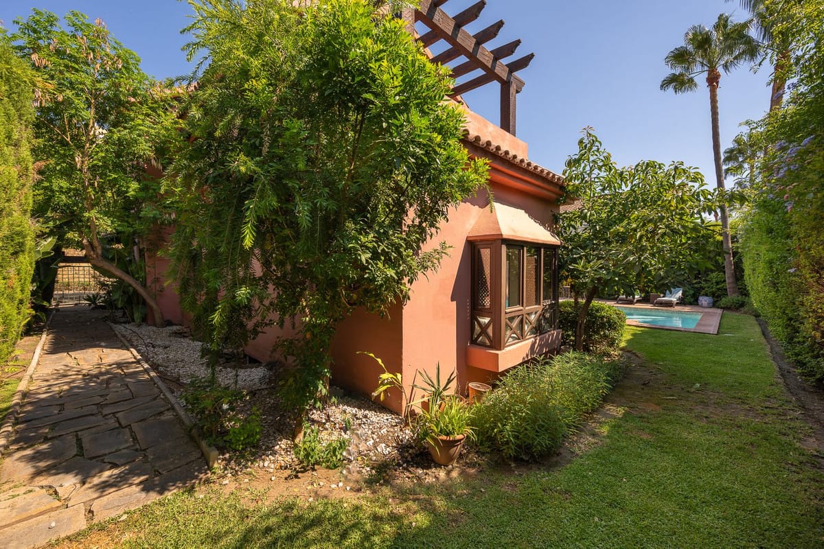 Framed by lush, mature gardens, the home is a celebration of authentic Andalusian charm: vaulted ceilings, wooden beams, bay windows, and handcrafted shutters invite natural light and create an atmosphere that is both elegant and warmly welcoming.