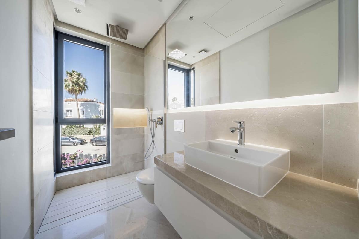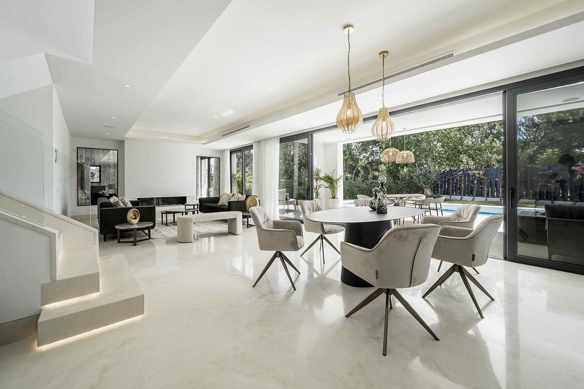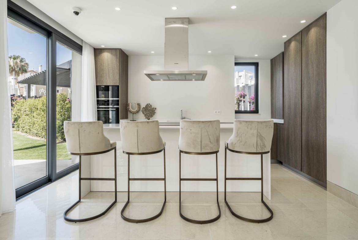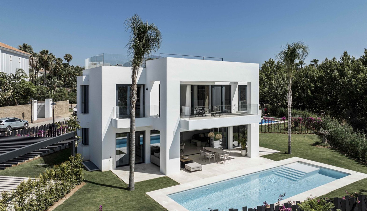 Stunning modern and elegant villa, located in one of the most prestigious areas of the New Golden Mile, between Marbella and Estepona. Just 1 km from the beach and a 10-minute drive from Puerto Banús, this property perfectly combines luxury, comfort, and an unbeatable location.