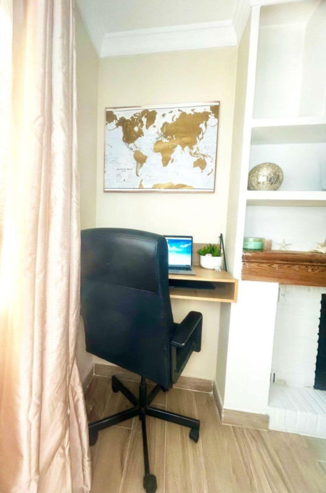 The open plan ground floor comprises a bright living room, dining room and kitchen with an office corner, ideal for working from home, two wood burning fireplaces and a guest bathroom.