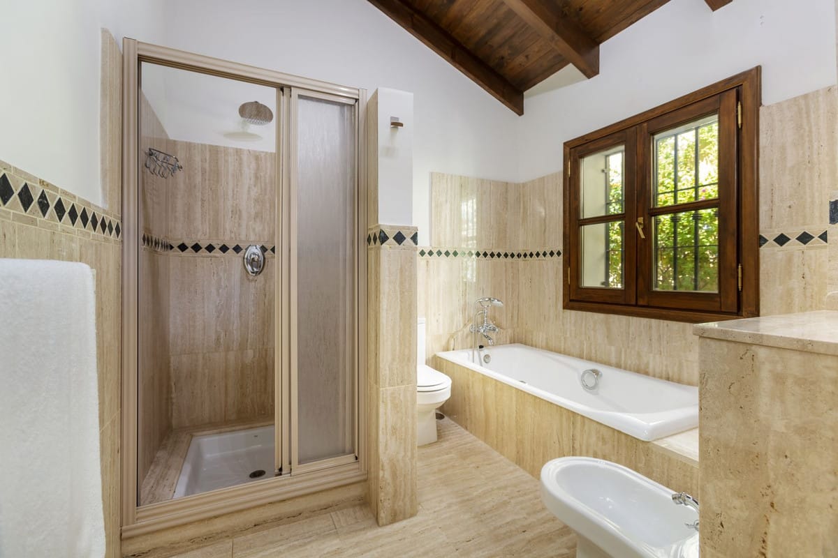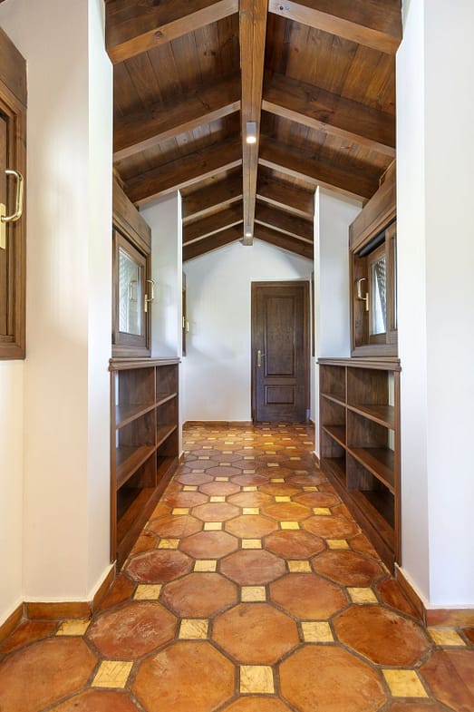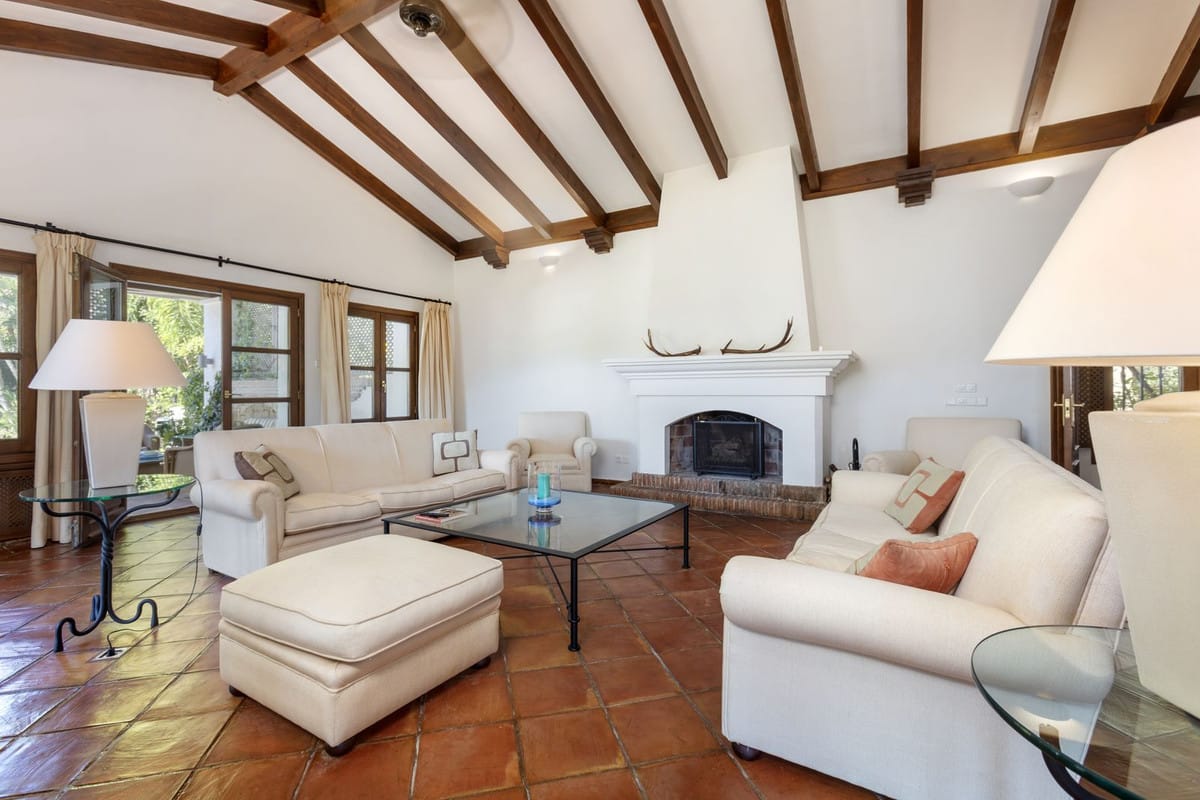 Electric gates lead you into the driveway which has parking for several cars and also a double garage. There is a utility room plus large kitchen that opens up into the breakfast room. huge dining room which leads into the impressive sitting room with high beamed ceilings and cosy fireplace – perfect for winter evenings. Opening up from the sitting room is a huge terrace and garden area with large pool which is heated – Ideal for all lovers of swimming on a winters day! The garden offers total privacy and total panoramic views accross the valley and village and to the protected forest areas and super exclusive La Zagaleta.