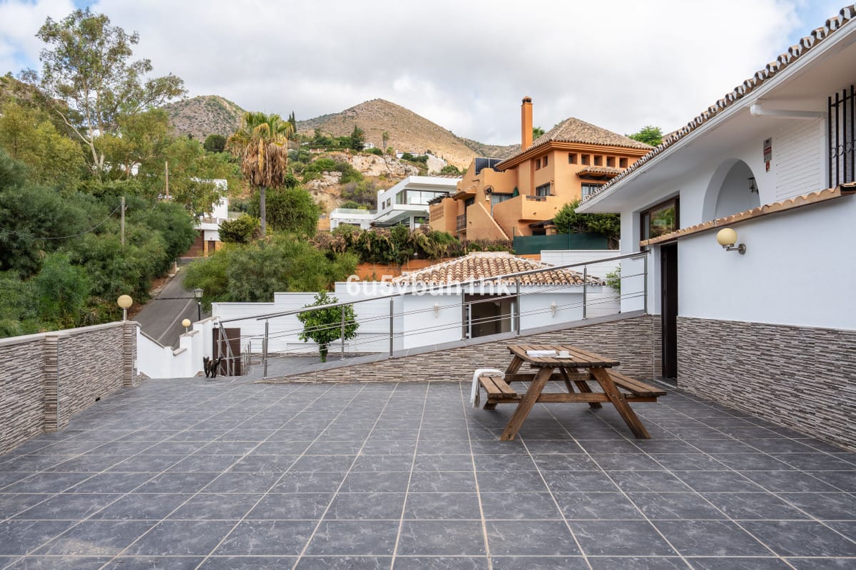In Capellanía, a quiet and well-connected area of Benalmádena, this property offers a 658 m² plot and 168 m² built area. In the main house, you’ll find 3 bedrooms with 3 full bathrooms. The master suite, with its spacious walk-in closet, is the real showstopper. The home also features a large, fully equipped kitchen and a bright living-dining room filled with natural light. An independent guest house (1 bedroom + 1 bathroom) adds flexibility and plenty of possibilities. Outside, a raised wooden pool awaits—perfect for summer and easy to maintain—along with private parking for several vehicles. Features: PVC windows with double glazing, air conditioning in both houses, solar panels with a storage tank in the main house, and a 100 L electric water heater in the guest house. Excellent location, just minutes from the motorway and close to the seaside promenade. Contact me to arrange a viewing!