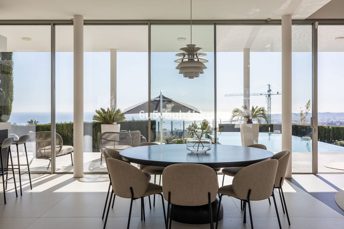 One of the villa's most striking features is the infinity pool that seemingly merges with the Mediterranean horizon. Whether you're taking a refreshing dip or lounging on the expansive terrace, the panoramic views of the Mediterranean and Fuengirola are simply breathtaking. The fully glazed terrace provides comfort for enjoying the outdoors all year round.
