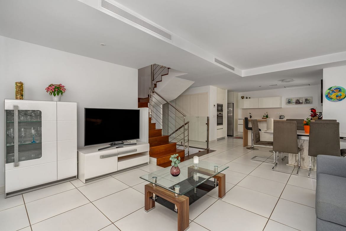This modern house is located within a residential complex, offering access to a communal pool, gym, and leisure area. The house has a spacious living area and functional layout, making it suitable for both families and individuals.