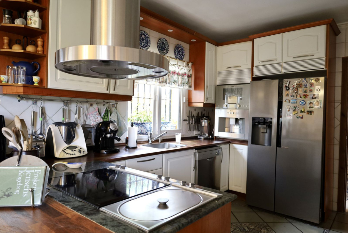 Downstairs you find 3 bedrooms and 2 bathrooms. A lovely bodega and wine cellar.