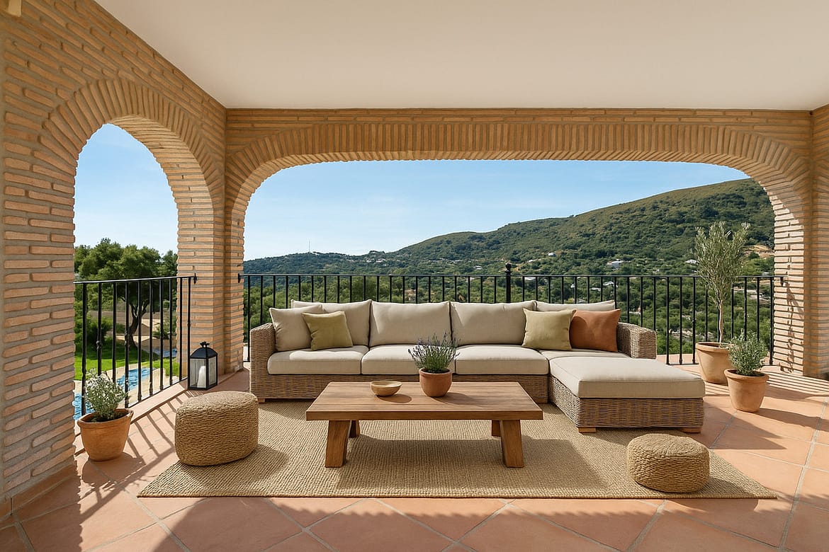 The property is five minutes from Casares village and 20 minutes from the coast. Sotogrande is 30 minutes away, Marbella 35 minutes, and Málaga Airport about one hour.