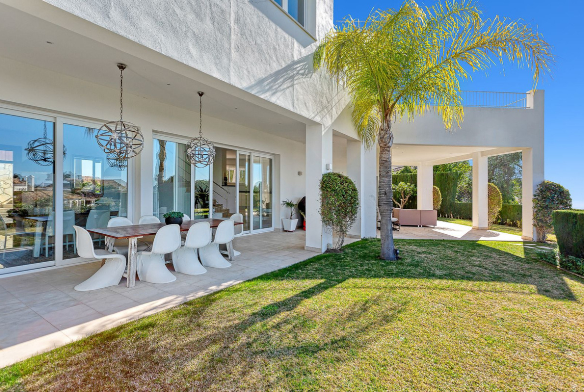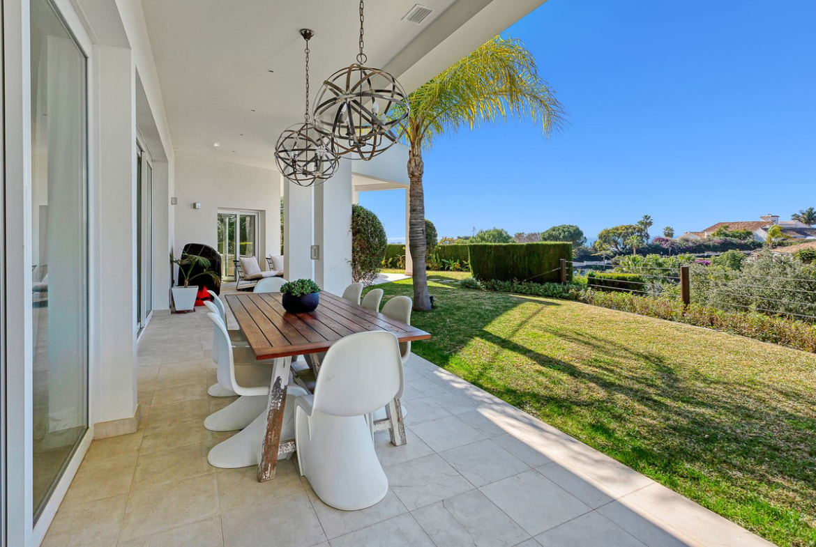 Stunning contemporary-style villa located within a short distance to one of the best beaches in Marbella. Situated at the end of a cul-de-sac in a very peaceful and family-friendly area of other large villas, just 6 km from the centre of Marbella. Marbella Golf & Country Club and Santa Clara Golf are just a short drive away. This beautiful South-west facing property has been constructed with high-end quality materials.