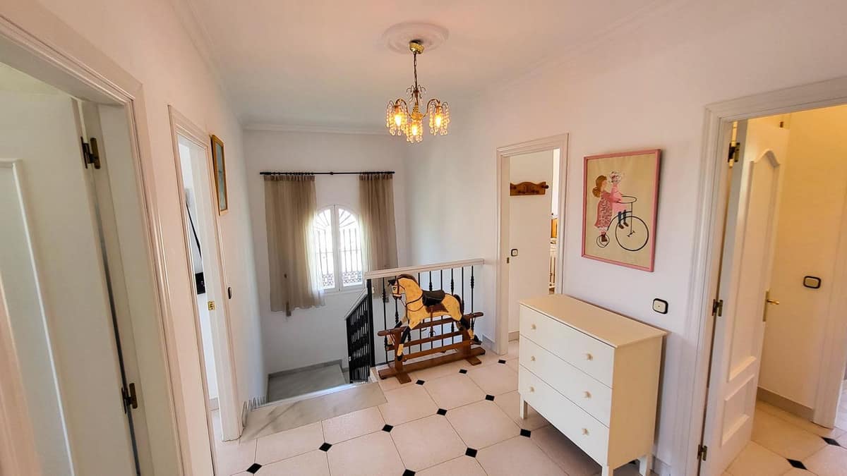 Upstairs, you’ll find 4 large and bright bedrooms. The master suite includes an en-suite bathroom, walk-in wardrobe, and a private terrace. The remaining 3 bedrooms share a full bathroom, with one of them also enjoying terrace access.