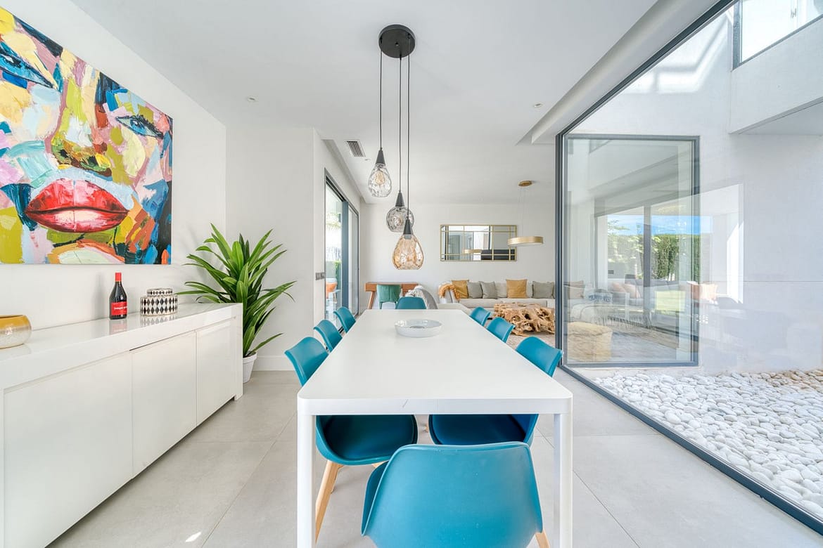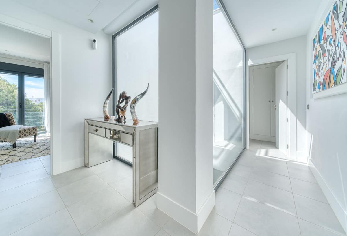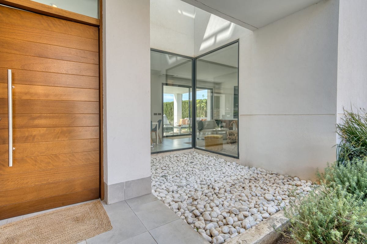 This exquisite detached villa is situated within a sought after gated community on the New Golden Mile in Estepona, adjacent to an exclusive golf course and within close proximity to the beach. Meticulously constructed with top-quality materials, fixtures, and fittings, this brand-new property boasts exceptional standards of luxury. Briefly comprising four bedrooms and a guest toilet, the open plan interior design features a lounge and dining area complete with a fireplace, a contemporary fully-fitted kitchen equipped with high-end Bosch appliances, a separate laundry room, and air conditioning throughout. Underfloor heating adds to the overall comfort of the villa. Further attributes of this remarkable property include a private garage, with additional outdoor parking for one or two vehicles, as well as a spectacular infinity-style swimming pool that complements the magnificent private garden. Expansive open terraces offer breathtaking panoramic views of the golf course and the sea from the upper level. The villa also features an electronic video intercom and home automation system, hot water produced through a solar energy system, and a hygro-regulated controlled mechanical ventilation system that regulates the ventilation of the entire house. This stunning property is a true example of luxury living, offering its occupants a refined, sophisticated, and contemporary lifestyle at an extremely competitive price!