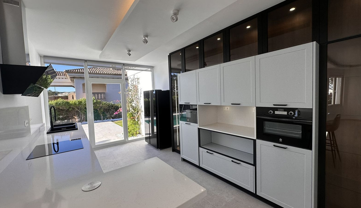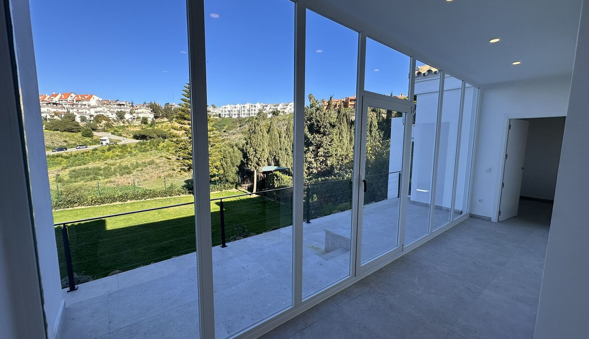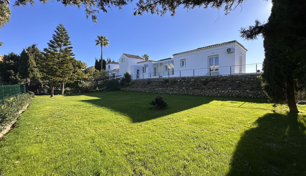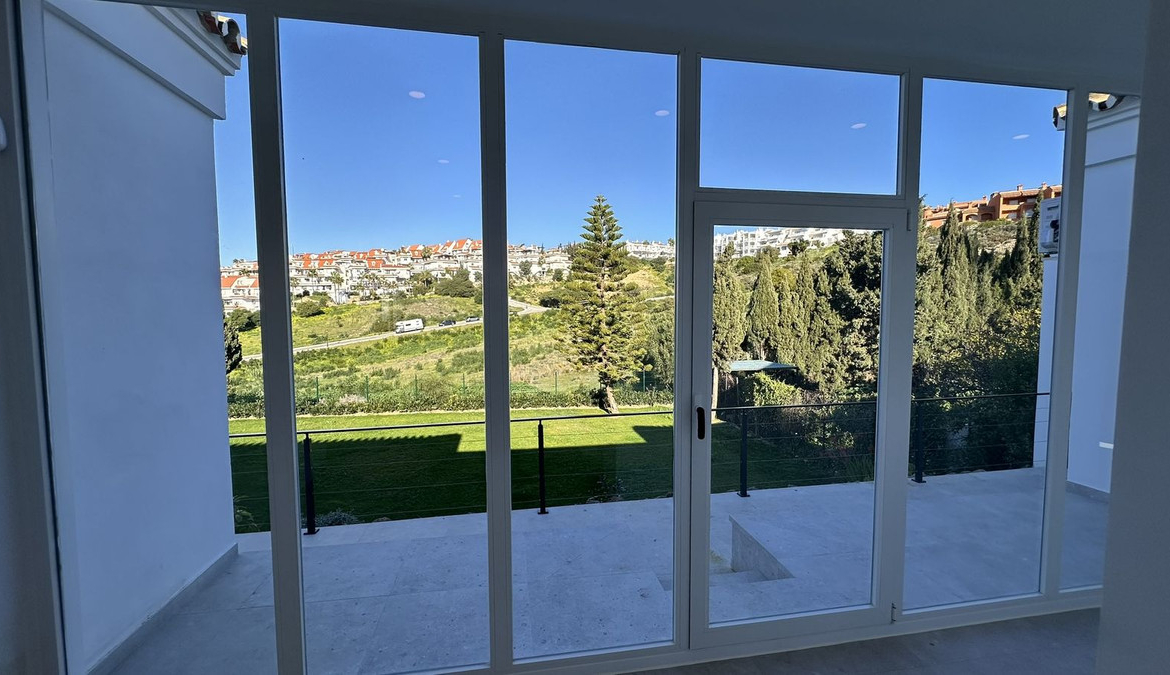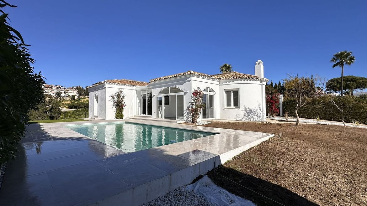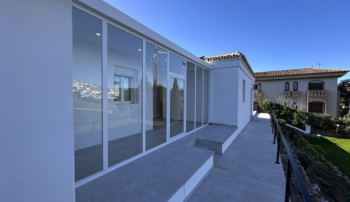 Fully renovated luxury villa on a large private plot with views of the green area in an established and desirable residential area, La Duquesa. This single-story villa has 4 generously sized bedrooms, all with private bathrooms. Spacious open plan living room, brand new high-quality contemporary kitchen with top-of-the-range appliances. The heart of the home centers around a large fireplace and a living area with magnificent sea views. The private pool and terraces are south-facing, enjoy expansive sea and mountain views and are ideal for families and outdoor living. Unique features are the large flat garden ideal for developing or an incredible children's area. Hilltop location overlooking the green zone park to provide tranquility and views. The demanding high-specification finish ensures buyers can simply move in and enjoy life. Solar panels provide heating and hot water, ensuring low energy costs throughout the year. Large windows allow incredible views and a wonderful harmony from the property to the private gardens.