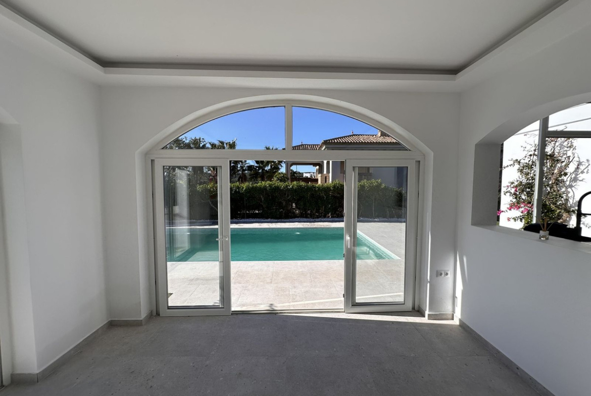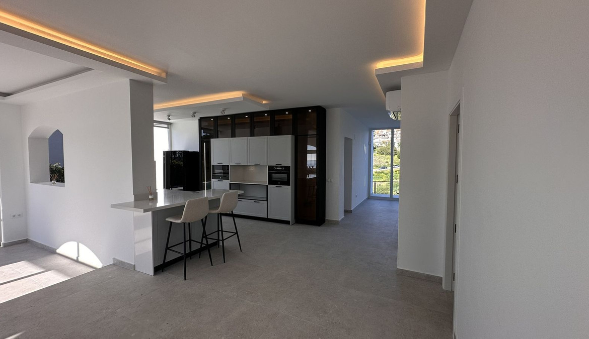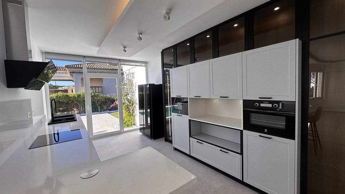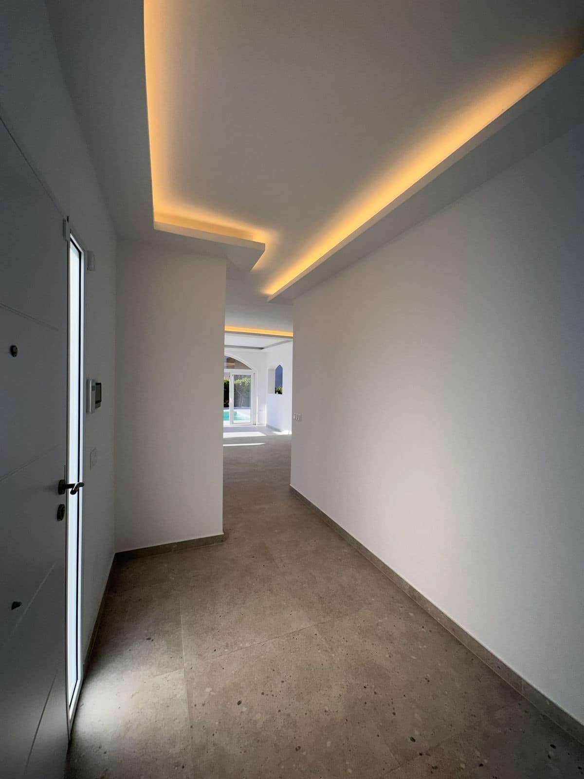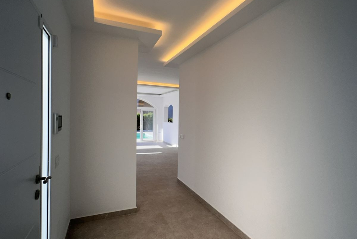 Fully renovated luxury villa on a large private plot with views of the green area in an established and desirable residential area, La Duquesa. This single-story villa has 4 generously sized bedrooms, all with private bathrooms. Spacious open plan living room, brand new high-quality contemporary kitchen with top-of-the-range appliances. The heart of the home centers around a large fireplace and a living area with magnificent sea views. The private pool and terraces are south-facing, enjoy expansive sea and mountain views and are ideal for families and outdoor living. Unique features are the large flat garden ideal for developing or an incredible children's area. Hilltop location overlooking the green zone park to provide tranquility and views. The demanding high-specification finish ensures buyers can simply move in and enjoy life. Solar panels provide heating and hot water, ensuring low energy costs throughout the year. Large windows allow incredible views and a wonderful harmony from the property to the private gardens.