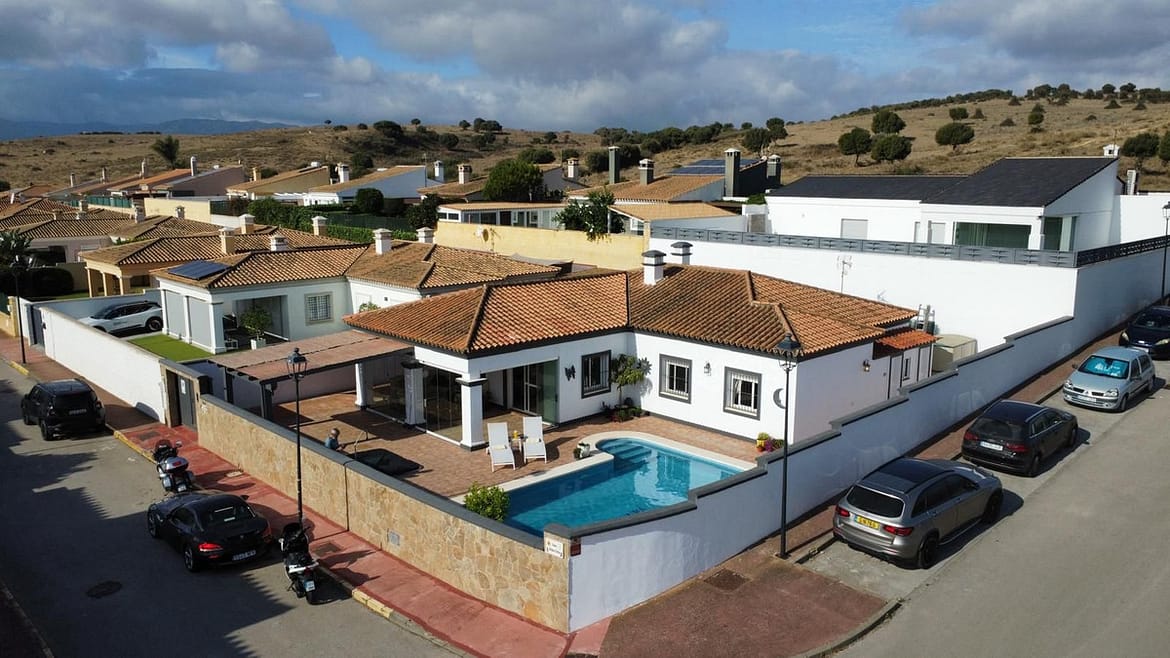 This charming single-level, 4 bedroom, 3 bathroom villa in Los Barrios offers comfort, privacy, and modern finishes in a peaceful residential setting. Set on a 495 m² corner plot with 229 m² built, the home enjoys open views over green land, Gibraltar, and excellent privacy.