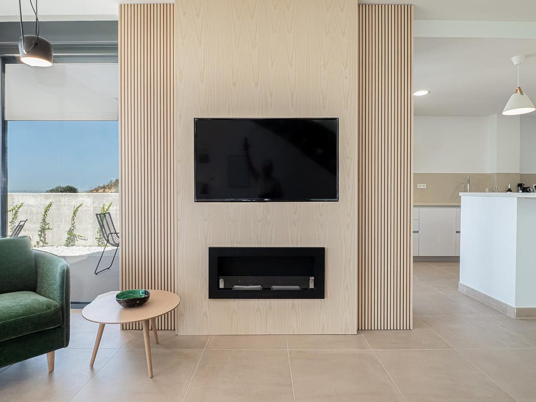 Built in 2018 and presented in immaculate condition, the home has been thoughtfully enhanced with premium finishes. The open-plan living area features a bespoke wooden TV wall, while the modern kitchen boasts a high-quality stone countertop and integrated appliances. Upstairs, wooden flooring adds warmth and elegance. The master bedroom enjoys floor-to-ceiling windows with breathtaking sea views, and the ensuite bathroom has been upgraded with stylish finishes, underfloor heating, and an enlarged window framing the same stunning outlook.