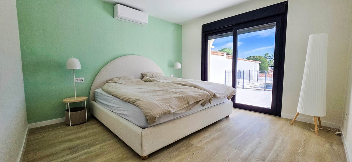The villa features four spacious bedrooms and three bathrooms, each finished with quality materials and fittings. Plenty of storage space throughout the house. The bathrooms benefit from underfloor heating, while new, individually controlled air-conditioning units have been installed in every room to ensure year-round comfort. The kitchen is equipped with top-quality appliances, and the open-plan design allows natural light to flow throughout the home.